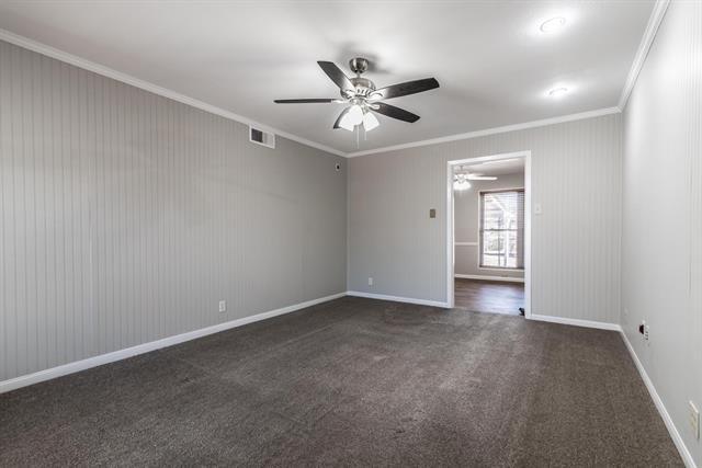Located on a tree lined street, this charming home is ready to move in today. The main living areas flow nicely into one another. Freshly cleaned carpets and laminate flooring throughout the main rooms, plus tile in the bathrooms. The sparkling white kitchen includes stainless steel fridge, and dishwasher. Built in microwave frees up counter space. Washer & Dryer are included in the utility room, which room for extra storage. The fenced backyard includes a workshop with electricity, and still has plenty of room for kids or a pet to roam around. The neighborhood school is walking distance, plus you're minutes from an onramp the Dallas Tollway and plenty of shopping. Come take a look!