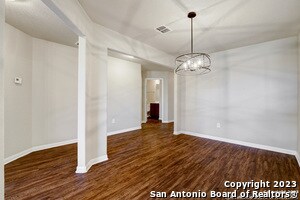 This single-story home features three bedrooms and two bathrooms with a functional, open layout. The main living areas are finished with luxury vinyl flooring for durability and easy maintenance, while the bedrooms include carpet for added comfort. The open floor plan connects the living, dining, and kitchen areas, creating a practical space for everyday living. Ceiling fans are installed throughout the home to help maintain comfort year-round. The backyard offers ample space for outdoor use, whether for relaxing or entertaining. Community amenities include a pool, jogging and bike trails, and a playground. Conveniently located just off Highway 90, the home provides easy access to Lackland AFB, downtown, and other key areas around the city.