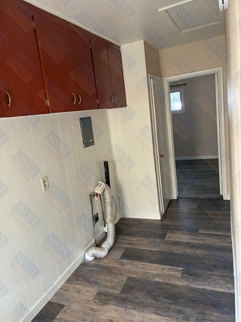 4 Bedroom 1 Bath House Large Detached Garage Pet Friendly w/additional fees, 2 pet policy Washer/Dryer Hookups, dishwasher, stove, fridge Air Conditioning & forced air heat All new flooring throughout & new paint! Broker Owned None
