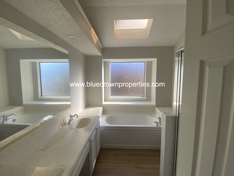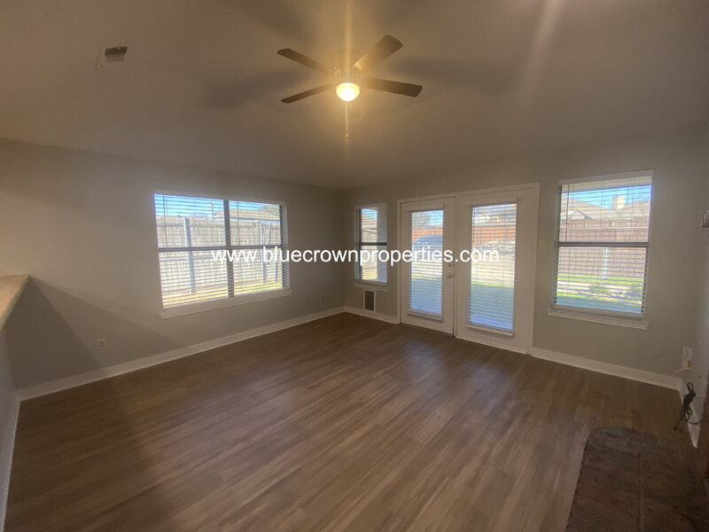 This home is located in Creek Crossing subdivision. 3 bedrooms and 2 living spaces. This spacious home offers a large living room and formal dining rooma and a family room with decoreative fireplace. The spacious kitchen has a lot of counter top space and a eat in breakfast nook area. Nice size bedrooms and bathrooms. Nice size backyard great or entertaining. Utility room with full size connections, two car garage. One or two small pets up to 35 pounds. Lease admin fee $195. Renters insurance of $100,000 is required.