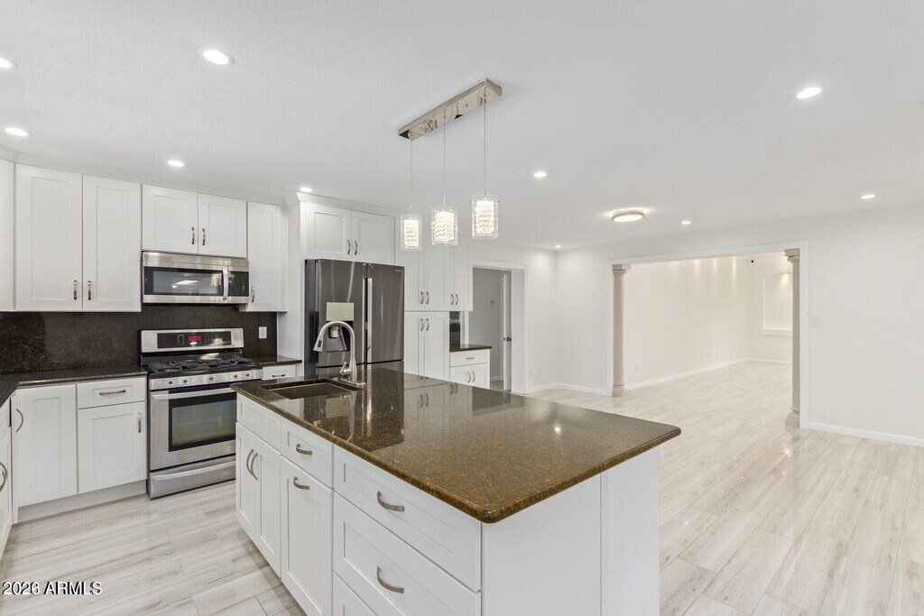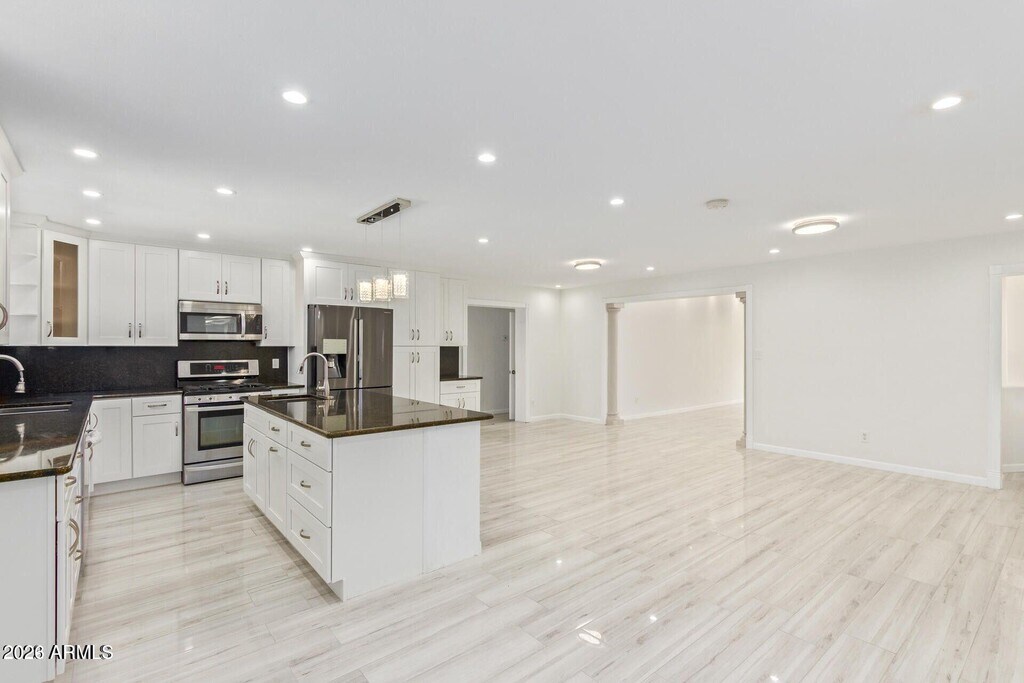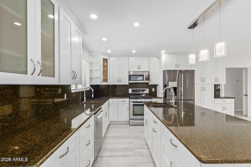 Spacious and well-maintained 4-bedroom,3-bath home with two master suites and a desirable split floor plan,ideally located in the heart of Phoenix. The home features a large formal living room with vaulted ceilings,a generous dining area,and a bright open kitchen equipped with stainless steel appliances,granite countertops,and a center island. Tile throughout the home(no carpet),two walk-in showers,and a separate formal laundry room with ample cabinet storage. The private backyard offers lush greenery and a large covered patio,perfect for relaxing or entertaining. Conveniently located near SR-51 Freeway,shopping centers,Camelback Colonnade,and Biltmore Fashion Park,with easy access to dining and entertainment.