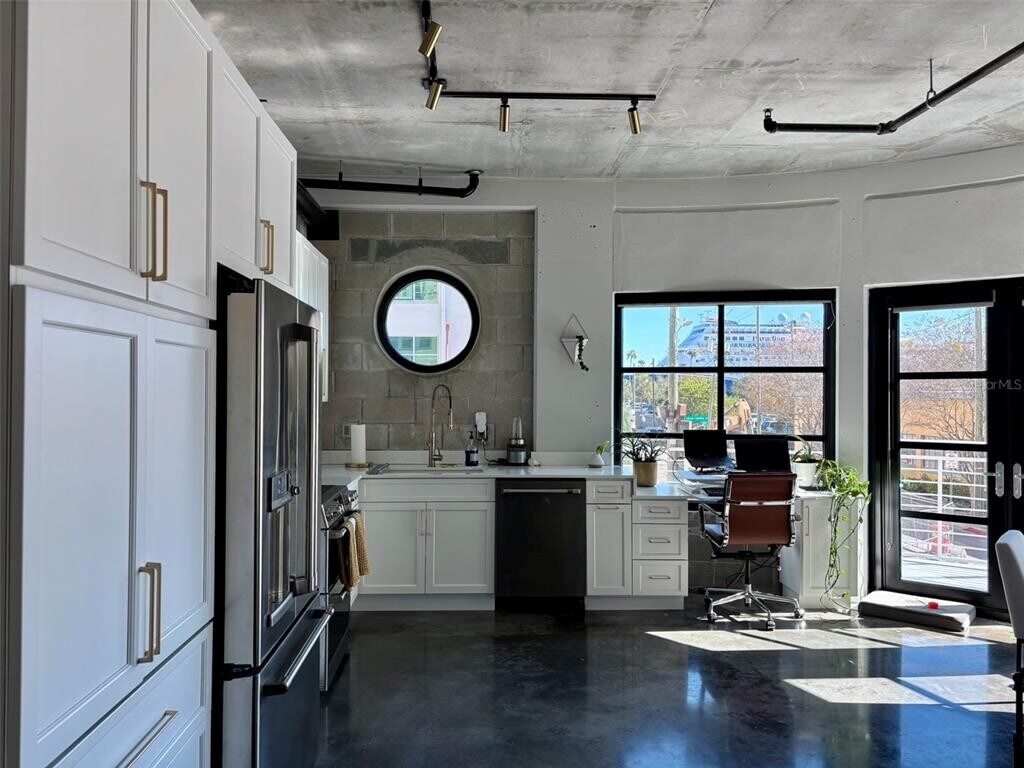 Welcome to one of Channelside’s most sought-after boutique buildings,offering a rare opportunity to lease a truly exceptional residence. RENT INCLUDES EVERYTHING—an assigned garage parking space,internet,cable,water,sewer,and trash—making for effortless,all-inclusive living (tenant responsible only for electric). This beautifully renovated one-bedroom,one-and-a-half-bath home spans 925 square feet and features ONE OF THE LARGEST PRIVATE OUTDOOR SPACES IN CHANNELSIDE,making it a highly desirable and rarely available unit. Enjoy breathtaking downtown skyline and cruise ship views from both inside the residence and the expansive outdoor terrace—perfect for entertaining,unwinding,or working from home in an inspiring setting. The thoughtfully designed interior blends modern elegance with industrial character,featuring polished concrete floors,exposed brick,and freshly painted interiors accented by black ductwork and window and door frames. The renovated kitchen is a standout,showcasing white and gold cabinetry,quartz countertops,and high-end appliances,including a coveted double oven. Additional upgrades include electric window shades throughout,all designer lighting from Restoration Hardware and West Elm,a newer washer and dryer,and a newer AC system (just three years old). A built-in window workspace offers an ideal work-from-home setup. The bedroom serves as a serene retreat with custom wall coverings,elegant lighting,and a walk-in closet,complemented by additional hallway storage and a beautifully updated wood panel accent wall. Located in a secure building with a guest parking pass for no-charge street parking,this residence offers an exceptional combination of luxury,convenience,and lifestyle. With unmatched outdoor space,premium finishes,and a prime Channelside location,this is truly a standout opportunity. This residence is available March 15,2026. MLS# TB8460549