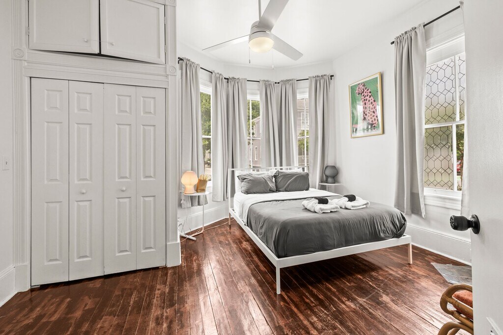 Lower unit available of Downtown Victorian duplex two blocks from SCAD's Garvin Hall. Coming fully furnished and utilities paid, this is a fantastic find! You will find beautiful wood floors through most of the home and a renovated bathroom with clawfoot tub and updated kitchen with gas stove. One sizeable bedroom with queen size bed with closet and one bedroom with a daybed and desk. Full laundry included! There are two tandem parking spots right in front of the door to access to unit. Walking distance to SCAD, the grocery store, cafes, and Forsyth Park.