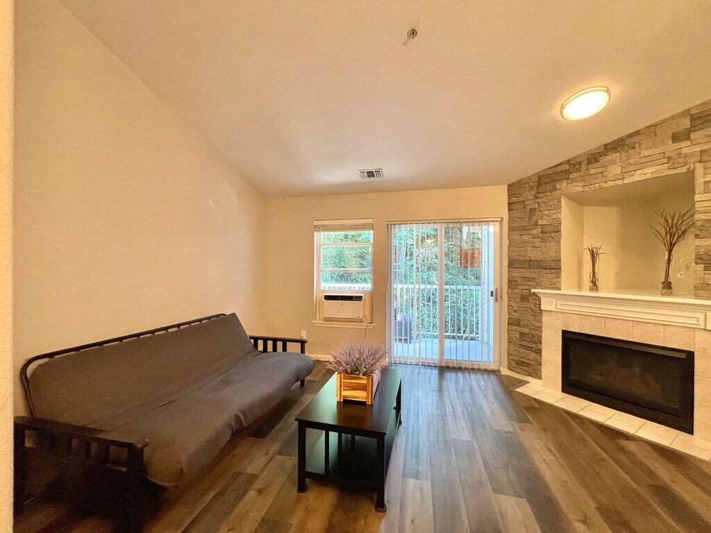 To schedule a tour or if you have any questions, please submit your information using the online tour request form. Submitting your request online is the most efficient way to have your questions addressed promptly. We kindly ask that you do not call our office number for tour requests. Your cooperation is greatly appreciated! Welcome to your dream top-floor condo nestled in the highly sought-after Woodinview community of Bothell! This meticulously updated home offers a blend of modern comfort and stylish living. As you step inside, you'll be immediately greeted by the grandeur of tall vaulted ceilings that create an inviting and spacious ambiance for the main living area. The open-concept kitchen is a chef's delight, featuring elegant quartz countertops, SS appliances, and an abundance of cabinets. The kitchen seamlessly flows into the adjacent dining room. The inviting living room is the heart of this home, complete with a cozy fireplace to warm up on chilly evenings and a convenient portable AC for those warmer days. Step out onto your private balcony, which overlooks a serene greenbelt. There's also an additional storage room for all your personal belongings. Retreat to the generous master suite boasting vaulted ceilings, dual closets, and an en-suite bathroom with two vanities. The generously sized guest bedroom is complemented by a full guest bathroom featuring a quartz vanity and a linen closet for added convenience. In-unit washer and dryer are provided. The ground level garage features one dedicated parking space, extra storage space, and a handy workbench for your DIY projects. The community offers ample guest parking, perfect for welcoming visitors or accommodating a second car. Additionally, the Woodinview community offers sports courts such as basketball and tennis courts, promoting an active and social lifestyle. The nearby Sammamish River Trail is a paradise for outdoor enthusiasts, along with shopping, restaurants, and grocery stores. Easy access to I-405. Placement within the sought-after Northshore School District. Rent includes garbage. A total $500 move-in/out fee would be needed upon move-in required by the HOA. Background and Credit check required. Minimum credit score of 700 (no credit reports showing delinquency, charge-offs, or unpaid debts; no open bankruptcy cases). No eviction history or collections. Income must be at least three times the rent amount. 12 month lease. No smoking, no cosigners. We do not accept portable screening reports. Renter's insurance is mandatory. First month's rent, and a security deposit are required. The lease must start within 30 days of application submission. Pets would be considered on a case-by-case basis and subject to restrictions. Maximum weight for pets: 25lbs.