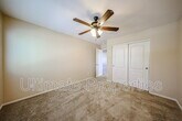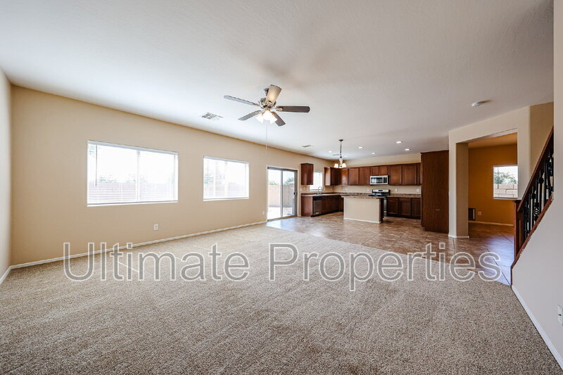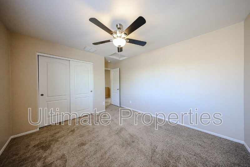 3 Bedroom + Den + 2.5 Baths. There is a front room and den that leads into the family room / kitchen area. Kitchen features plenty of cabinet space, built in microwave, range, dishwasher, kitchen island, pantry and open to the family room. Tile in all the right places. Blinds and fans through out. Master suite features large bedroom, dual sinks, separate tub and shower plus walk in closet. Backyard features covered patio and easy to maintain landscaping. Pet Details: All Pets Allowed
