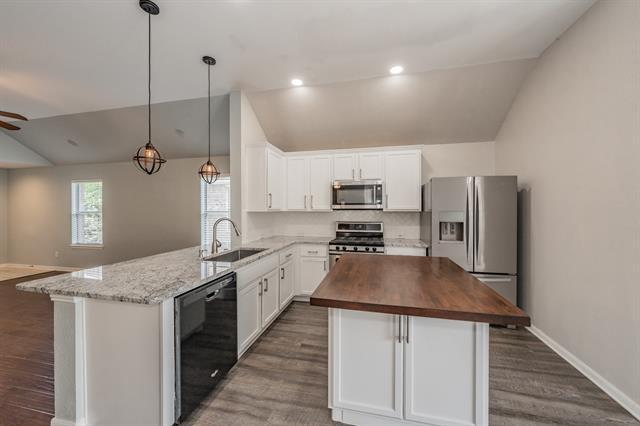 Welcome to this beautifully updated single-story gem nestled in the highly sought-after Villages of Woodland Springs, within the award-winning Keller ISD. This charming 4 bedroom home boasts a split-bedroom layout, offering privacy and space for everyone. The spacious primary suite is a true retreat, featuring two walk-in closets and a beautiful ensuite bathroom. Each of the three secondary bedrooms includes walk-in closets and ceiling fans and shares a fully updated hall bathroom. The open-concept kitchen is both functional and stylish, offering a ton of cabinets, expansive counter space, a corner pantry, and a butcher block island ideal for meal prep or casual dining. Off the kitchen, you'll find the nice sized laundry room. Step outside to your backyard oasis with an oversized patio with a pergola and retractable sunshade, ideal for entertaining or relaxing on warm summer afternoons. Additional highlights include a two car garage with extra space for a workbench or storage, a cozy gas fireplace, built-in surround sound in the living room and primary bedroom, and a convenient drop zone near the garage entrance. This move-in ready home has it all, style, comfort, and unbeatable location. Don’t miss your chance to make it yours!
