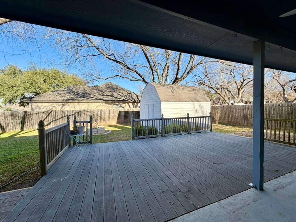 Beautiful single-story home on a corner lot in New Braunfels! Located at 1213 Camellia Ln, this 4-bedroom, 2-bath home offers a spacious and functional layout ideal for comfortable living. The open living area features a cozy fireplace, perfect for relaxing or entertaining. Enjoy a spacious kitchen with ample counter space and storage, designed for everyday convenience. Step outside to a huge deck ideal for gatherings, outdoor dining, or simply enjoying the Texas evenings. A storage shed provides additional space for tools and equipment. Situated on a desirable corner lot, this home offers added privacy and curb appeal while being conveniently located near schools, shopping, dining, and major roadways. Schedule your showing today—this home is a must-see!