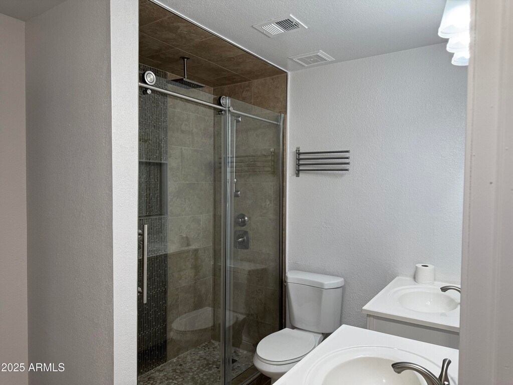 Come see this updated home with all new appliances,Carpet,fans,beautifully updated Primary shower,New Paint throughout,new bathroom vents,New washer,dryer and refrigerator included. Enjoy this split home that can be used as 2 primary room set ups. Main primary room has a beautiful walk in closet with designer cabinets and shelving. A remodeled stunning primary shower with nice sliding glass doors. There is a very large great room with eating area. There is an extra room that has many possibilities,use as a den,or workout room,sewing or arts and crafts room,or a possible guest room. Please note,there is no closet to this den. Enjoy a very large covered patio with a large back yard with artificial grass. The front entry was expanded with large use of pavers. This home is conveniently located just a few blocks from the 101 North,shopping and minutes from popular restaurants.
