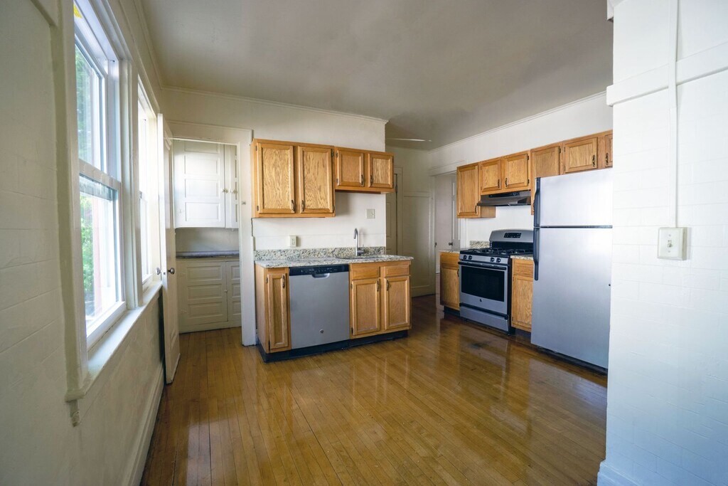 Beautiful 3 bedroom flat with off-street parking Newly renovated ceramic tile bathroom Full living room with fireplace Full dining room Hardwood floors Granite counter tops Energy Star stainless steel appliances including Dishwasher, Refrigerator & Gas Stove Energy Star gas furnace Energy Star Coin-Op washer & dryer Energy Star windows & LED interior lighting LED Exterior security lights Basement glass block windows Hardwired 10 Year Smoke/CO detectors with battery backup No Pets Please No Extra Charges/Fees