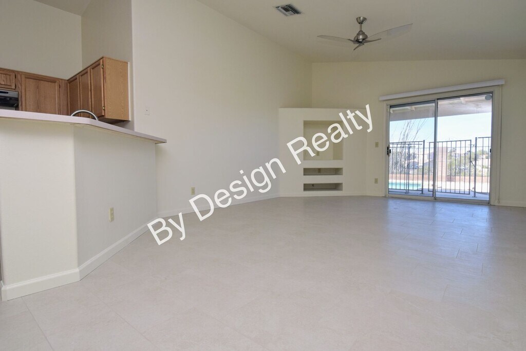 West Side 3 Bed 2 Bath with Private Pool that backs to open hillside and has great views to the North. Open floor plan with 2 distinct flex spaces that could be used as living, dining, or family areas. The kitchen has stainless steel appliances, a gas stove, and a breakfast bar. Massive Primary Suite with dual closets, one of which is a walk-in and a large reading nook area. The primary bath has double sink vanity and garden tub. The covered patio leads to a fenced private pool that is bordered by the natural desert hillside to the West and has mountain views to the north. Full-size washer/dryer, 2 Car Garage, Pool Service included in the monthly rent. This home is offered as NON-SMOKING. Dogs will be considered but tenants with CATS will NOT be considered.