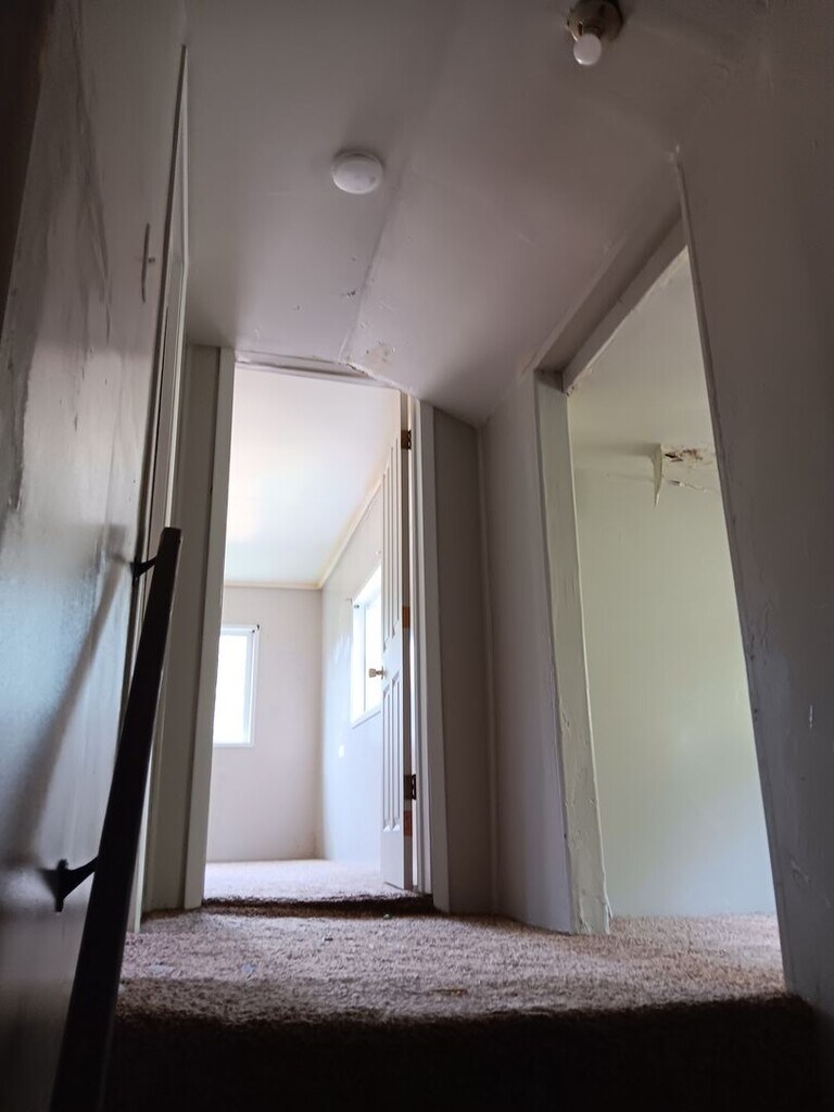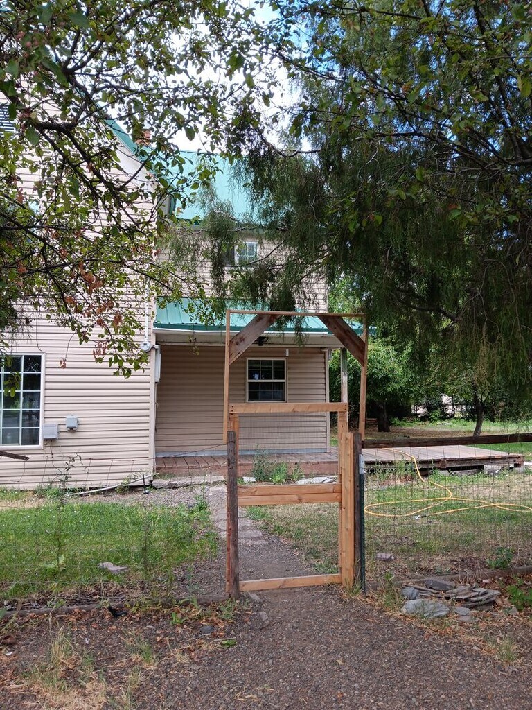 Two Story, 3 bedroom, 1 bath. Dining - living room carpeted. Laundry hookups(electric dryer only). Kitchen & laundry area laminate flooring. Gas furnace. No air conditioning. Street parking and private drive way. Large yard with fruit trees and gardening space.