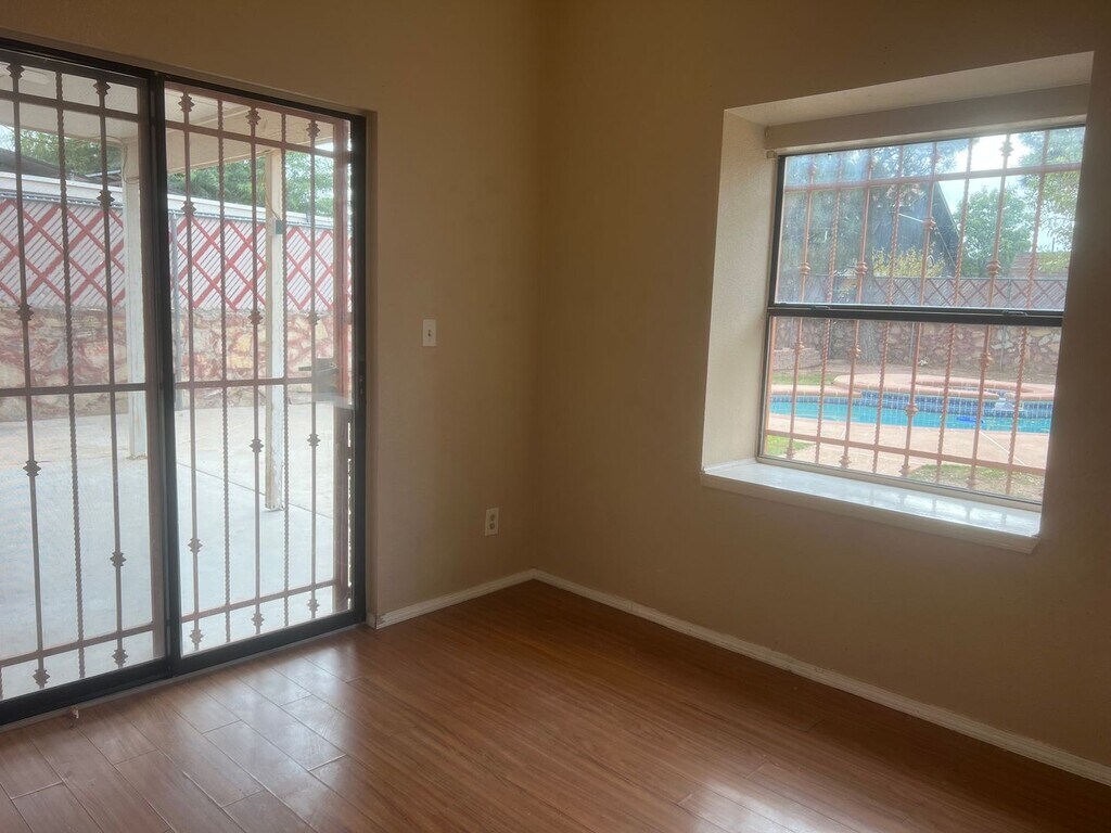 Welcome to this incredible 4 bedroom, 2 1/2 bath home located in the desirable East El Paso area! This spacious house offers a range of amenities that will surely enhance your living experience. Step into the inviting atmosphere of the ceramic flooring throughout the main living areas, providing both durability and style. Stay cool during the warm Texas summers with the refreshing pool and spa, perfect for relaxation and entertaining guests. The refrigerated A/C system ensures a comfortable environment year-round. The washer/dryer hookups make laundry a breeze, while the landscaped back yard offers a serene outdoor space to enjoy. Ceiling fans are installed throughout the home to provide optimal air circulation. Cozy up by the fireplace during cooler evenings, creating a warm and inviting ambiance. The laminate wood flooring adds a touch of elegance to the bedrooms, creating a comfortable and stylish retreat. The loft area provides additional space for a home office, playroom, or entertainment area. Step out onto the balcony deck and take in the beautiful views of the surrounding neighborhood. Unwind after a long day in the spa tub, offering a luxurious and relaxing experience. This home truly has it all, from the spacious layout to the desirable amenities. Don't miss the opportunity to make this incredible house your new home. Contact us today to schedule a tour and experience the charm and comfort of this East El Paso gem! All El Paso Rentals residents are enrolled in the Resident Benefits Package (RBP) for $45.95/month which includes renters insurance, credit building to help boost your credit score with timely rent payments, $1M Identity Protection, HVAC air filter delivery (for applicable properties), move-in concierge service making utility connection and home service setup a breeze during your move-in, our best-in-class resident rewards program, and much more! More details upon application.