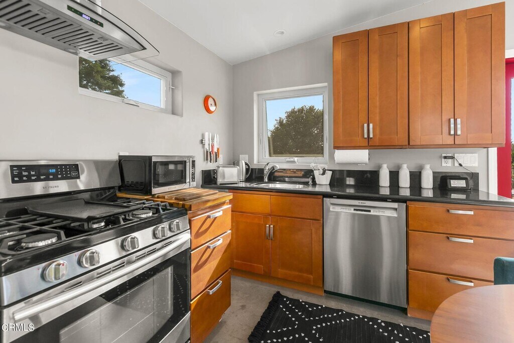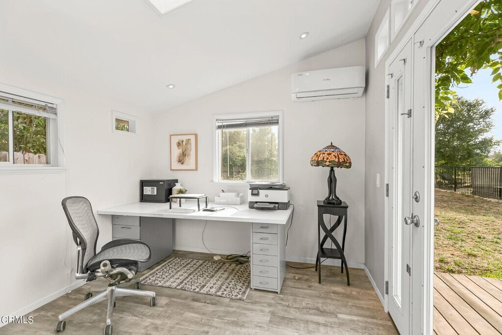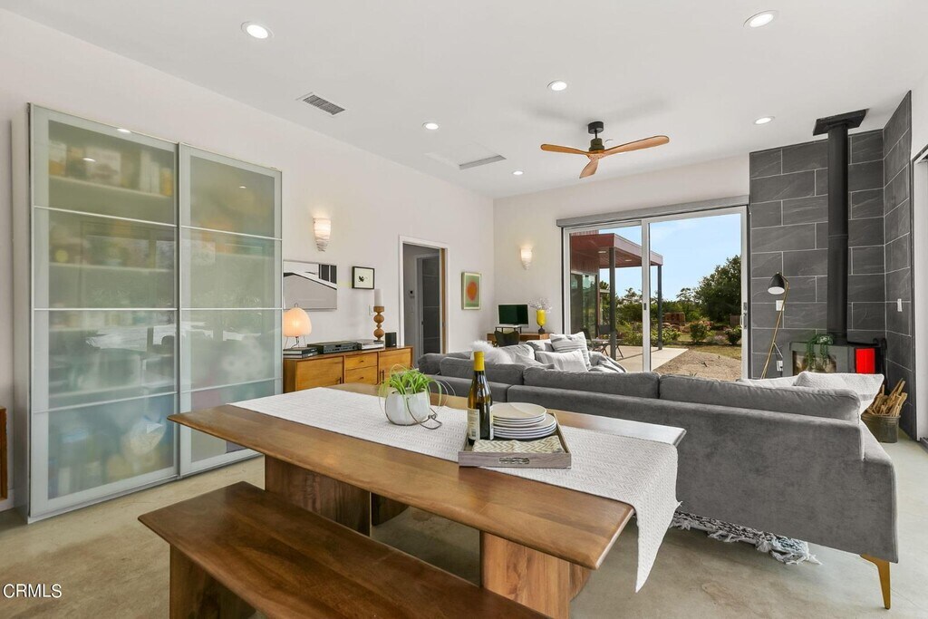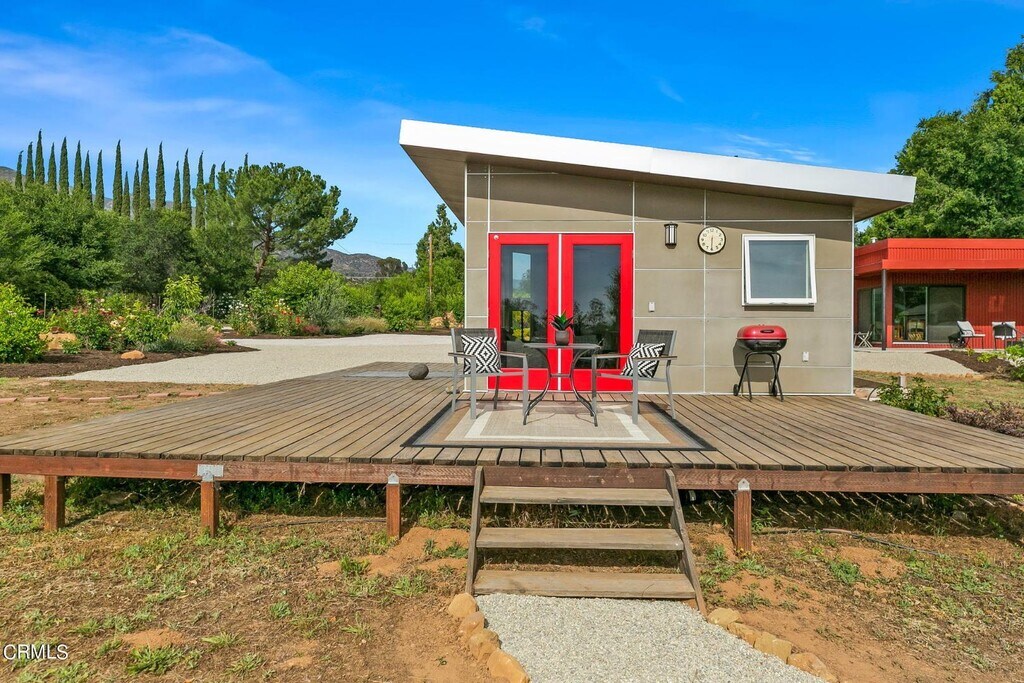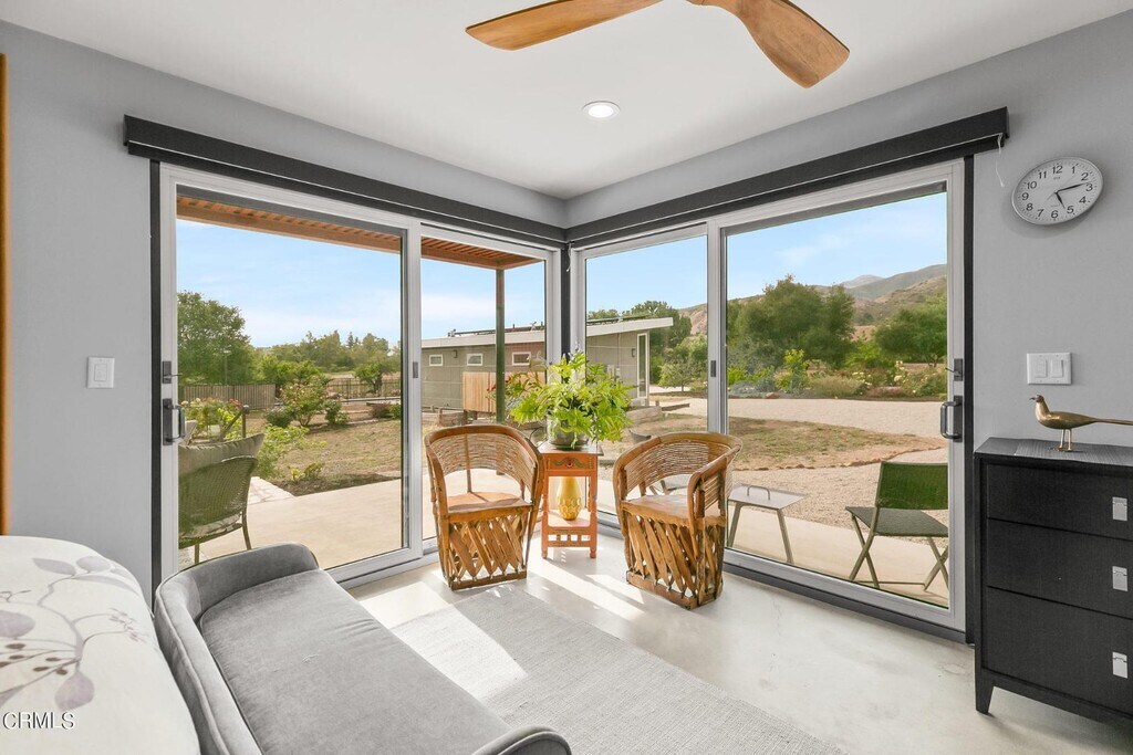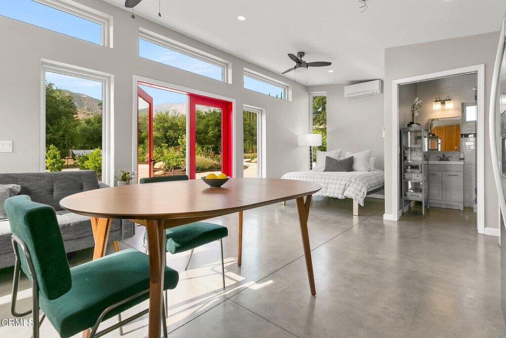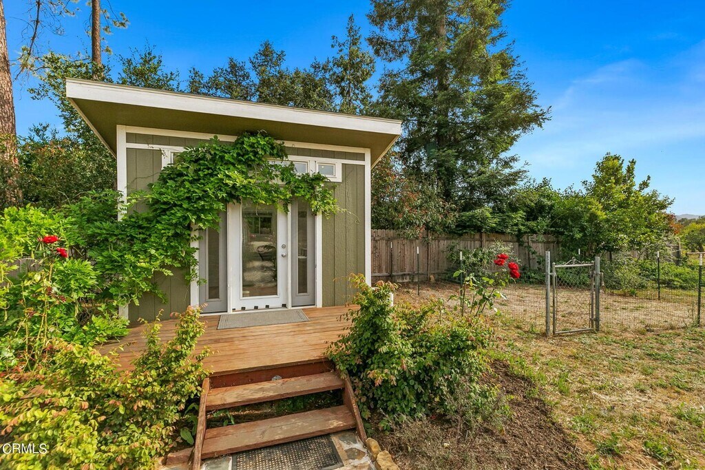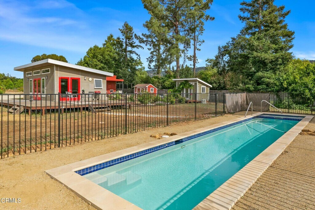At the end of a quiet country road you have found a simple and tasteful property with just the right amount of refinement, nature and open space to feed your soul! The 2 bedroom main house is situated to take in the views, the studio style guest house overlooks the adjacent apricot farm, and the 3rd detached structure allows for another myriad if uses. Furnished however the furnishings in the photos are not the same now. Spend the day listening to the sounds of nature while taking a dip in the sparkling pool, or take advantage of this property being at the base of Ojai's beautiful mountains with opportunities for hiking, biking and horse back riding. The property boasts an extensive family orchard, over fifty varieties of roses adding color and brilliance to the stone paths that go from one house to the other. This solar-powered, stylish and peaceful piece of paradise has been developed with taste, beauty and utility in mind. Truly one-of-a-kind! Fully furnished option available at $6,000 per month with $12,000 security deposit.
