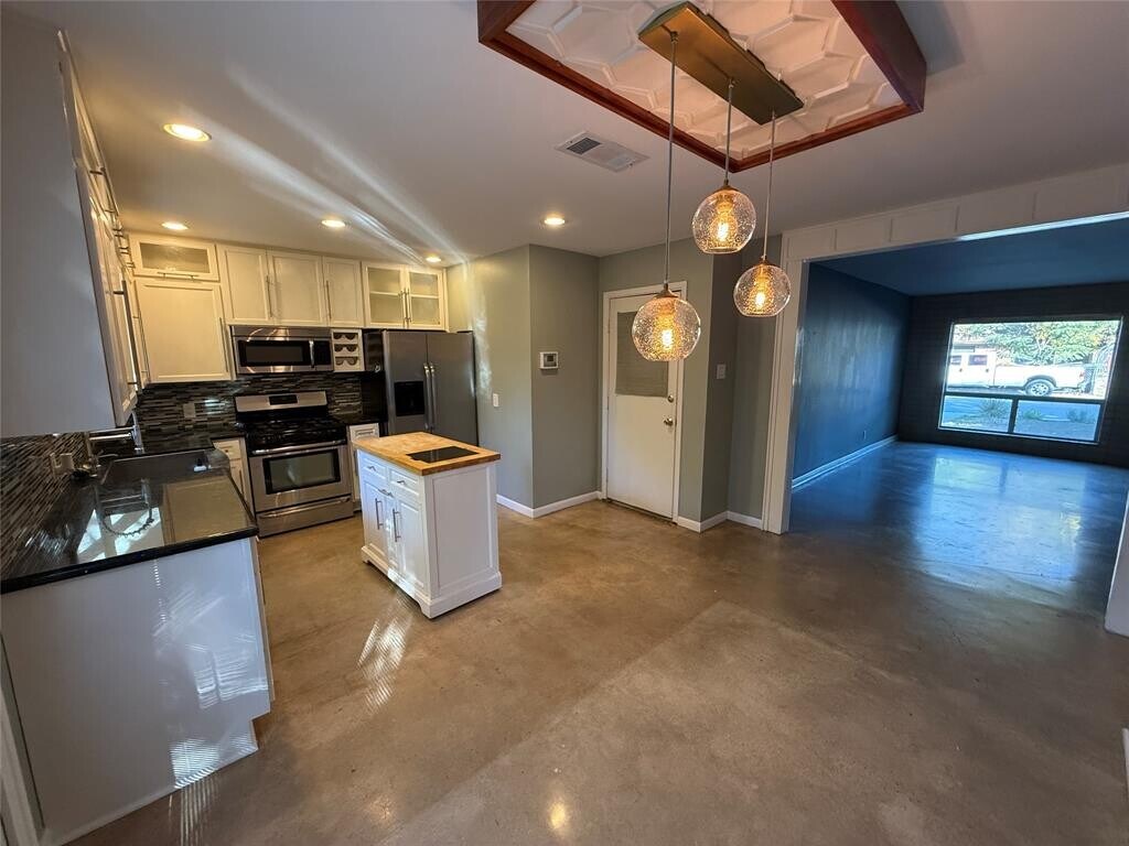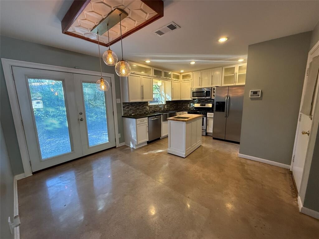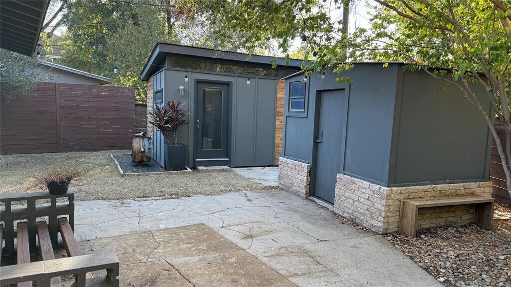 Beautifully updated East Austin home just 3.5 miles from Downtown and 10 minutes to the airport! Features include polished concrete floors, newer energy-efficient windows and French doors, blackout Roman shades, and a mid-century modern brick accent wall. The remodeled kitchen offers granite countertops, an apron-front sink, custom cabinets, new appliances. The bathroom has marble countertops, double sinks, floor-to-ceiling subway tile, an extra-tall glass shower, and updated fixtures. Enjoy a landscaped yard with river rock xeriscaping, privacy bamboo, mature trees, and a separate 10’x14’ powered workshop with metal roof, roll-up door, and 240V outlet. Located two blocks from Boggy Creek Greenbelt and Walnut Creek Trail in a quiet, tight-knit neighborhood. Please Note: Renters general liability insurance of $100,000 coverage is required.