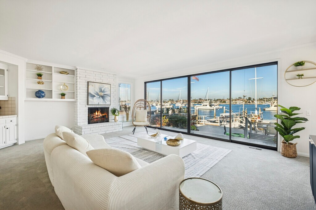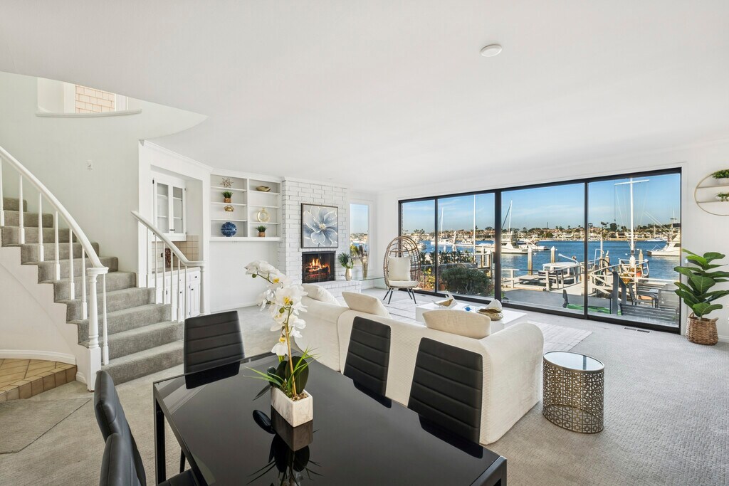 Situated on the coveted Newport Beach bayfront, 1214 E Balboa Blvd is a four-bedroom, four-bathroom coastal retreat embodying comfort and breathtaking waterfront views. Available as a furnished lease, the thoughtfully designed layout features a convenient downstairs bedroom and full bath just off the entry. Upon entering, you are immediately welcomed by a light-filled living room, where sliding glass doors open seamlessly to the expansive bayfront patio—an ideal space for entertaining, unwinding, and soaking in the stunning views of Newport Harbor. Upstairs, the master suite is a true sanctuary, complete with a cozy fireplace, sitting area, a spacious en-suite bath, and sweeping panoramic views of the bay from your private balcony. The second floor also boasts two additional bedrooms, a shared bathroom, a laundry room, and a generous back deck off the rear bedroom with a peek-a-boo view of the ocean. Just steps from the sand, this exceptional home also features a private dock and pier providing direct access to the bay for boating, paddleboarding, and the ultimate waterfront lifestyle.