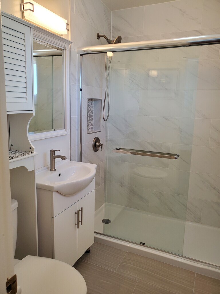 . No application fee. By appointment only. . Military welcome . Sorry, no pets . Call or text for prompt response. LOCATION: Residential neighborhood, 5 miles to 32nd Street Naval Station (the Base), 8 miles to downtown San Diego, near Starbucks, restaurants, supermarkets and shopping, on Manchester St. off Plaza Blvd. ROOM AND HOUSE: Room w/bath (13 x 12), step-in closet, ceiling light/fan, one-story house with quartzite kitchen, island, peninsula, walk-in pantry, 25cf refrigerator, 5-burner range, and dishwasher. Washer/dryer use. Original hardwood flooring throughout, floor-tiled baths. Dual-pane energy efficient windows, 10-foot sliding door to covered patio. Covered patio with canyon view to one side and bit of city view to other side. TERMS AND SECURITY DEPOSIT: Month-to-month rental agreement. Utilities shared. Security deposit is equal month's rent. House is smoke/drug-free, social drinking acceptable. QUESTIONS: If you leave a message or text, let me know the date and time we can briefly speak or to set the date and time for you to see.