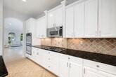 Stunning lakeview home on a premium lot in a highly sought-after community, just 5 minutes from the beach, mall, and highway! This move-in ready 4 bed, 3.5 bath home features an open layout, upgraded kitchen with massive island, white wood cabinets, granite counters, stainless steel appliances, and tile backsplash. Enjoy 2 luxurious master suites with a private screened balcony, spa-style bath, and huge walk-in closet. Includes a spacious den/office (convertible to 5th bed), crown molding, wood-iron stair rail, custom travertine patio, lush landscaping, high ceilings, and a finished 735sf garage.
