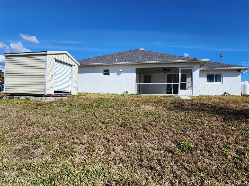 This spacious,comfortable,and convenience single-family home is located in the desirable Cape Coral area,offering a quiet residential setting with easy access to everything you need. The backyard sits on the Carousel Canal,providing peaceful water views and direct freshwater access. The property features 4 bedrooms,2 bathrooms,and a 2-car garage with a functional split-bedroom floor plan. The open great-room design provides plenty of natural light and comfortable living space. Inside laundry adds everyday convenience. Step out to the screened-in lanai overlooking the canal - perfect for relaxing or enjoying Florida’s outdoor lifestyle. From your backyard,you can kayak or take a small boat to Lake Zurich,located approximately 1/3 mile away,a popular freshwater lake known for recreation and fishing. The home is equipped with impact-resistant windows and a whole-house generator,providing added safety and peace of mind during hurricane season. Conveniently located near major roads,this home allows easy access throughout Cape Coral and an easy commute to Fort Myers. Shopping,dining,grocery stores,schools,parks,and walking paths are all just minutes away. This property is ideal for tenants seeking space,comfort,and waterfront living. (Income requirement: 3× monthly rent,pass Background & Credit Checks.) Available for lease - schedule your showing today.