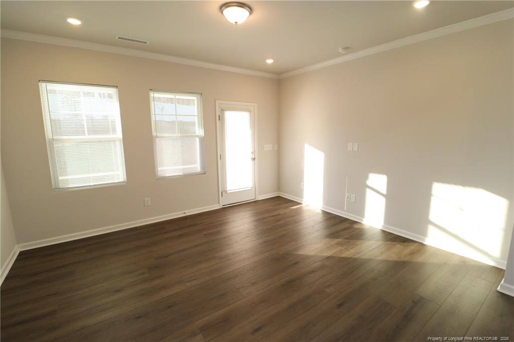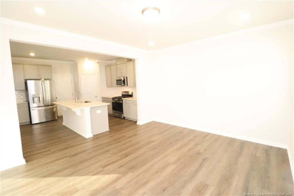 This welcoming home just outside of Durham brings community living and connectivity together and is ready for immediate occupancy. Park in your private driveway that leads to a two-car garage and your covered front porch. Once inside, you'll find yourself greeted with an open-concept floorplan including luxury plank flooring that flows through the entire first level. The foyer opens on the right to the staircase and straight ahead into an impressive living space. The spacious kitchen showcases ample cabinet space, quartz countertops, a subway tiled backsplash, modern gray cabinetry adorned with crown molding, and a conveniently located corner pantry. There is also a stainless steel appliance package including a gas oven, built-in microwave, dishwasher, and a French door refrigerator with ice/water in the door. Dont forget about the breakfast bar with a deep-bowl undermount stainless sink that makes morning clean-ups a breeze. Right across the island you will find a perfectly-proportioned dining area with two windows. On the other side of the island, you'll next enter an adjoining family area with two windows, perimeter lighting that is throughout the entire house, and a design that makes furniture placement a breeze. This area also offers easy access to a screened-in back porch overlooking a private, wooded buffer; ideal for al-fresco dining and relaxation without the hassle of bugs. Back inside, don't miss the spacious bedroom with a double door closet. Don't need the extra space? No problem, you just found that home office or dedicated exercise space you've been searching for. This space is right across a full bathroom offering tiled floors, an elevated quartz-topped counter vanity with a undermount sink, and a tub/shower combination. Next, take a quick jaunt to the 2nd floor where you'll find a spacious loft with carpet, double windows, and perimeter lighting. This area offers additional living space that can be utilized in a multitude of manners. The top floor is also home to a conveniently located laundry room with washer and dryer included for resident's use; no more hauling clothes up and down the stairs. The crown jewel of this house is the primary suite. This impressive space showcases triple windows, a tray ceiling, and a large walk-in closet. The primary bedroom also includes access to a spa-like bathroom. The bathroom includes an elevated, quartz-topped countertop vanity with dual undermount sinks, a linen closet, a private water closet, and beautiful tiled floors that lead into a tiled walk-in shower with a bench and a glass enclosure. You will also find bedroom #3, #4, and #5 upstairs; all generously proportioned with ample closet space and lovely natural light. They also enjoy easy access to a full hall bathroom including tiled floors, an elevated quartz-topped vanity with an undermount sink, and a tub/shower combination. Don't forget to enjoy the community living amenities that include a playground and a sparkling pool.