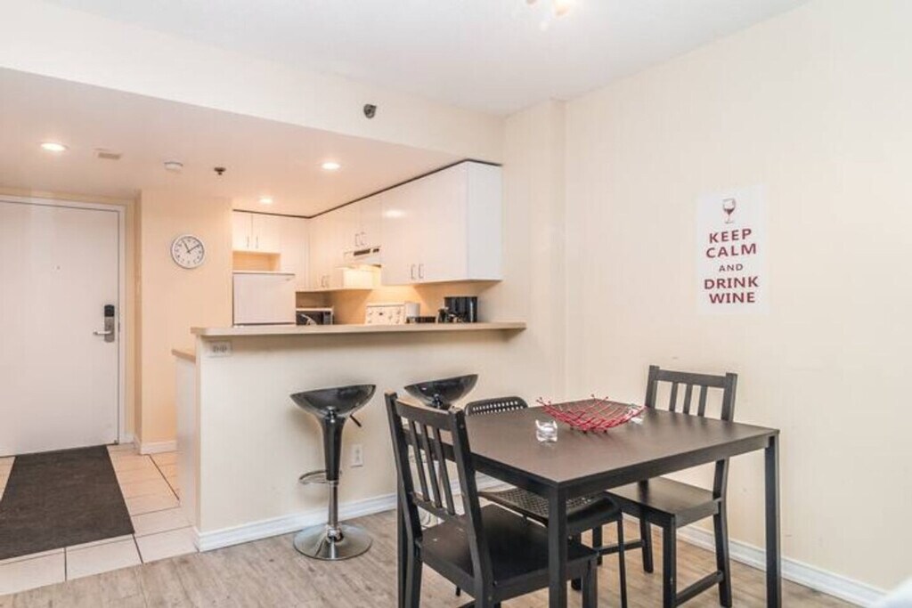 In the heart of Montreal's vibrant streets, this sanctuary offers a haven veiled from the city's frenetic pace. Behind the elegant facade of the hotel that shares its name lies a community thriving on exclusivity and luxury. Residents enjoy a lifestyle where tranquility seamlessly intertwines with urban convenience, with desires within reach, just a stone's throw away from the serene enclave they call home. This apartment welcomes two guests and features a studio room with a queen bed and a full bathroom. Enjoy the convenience of an elevator and a security system for peace of mind. After visiting some exceptional apartments ourselves, we've strived to make this apartment as welcoming and cozy as possible for our guests. It includes a smart TV for your viewing pleasure and high-speed Wi-Fi to stay seamlessly connected throughout your stay. Indoor parking with in and out privileges is available for an additional fee, depending on your length of stay. We also offer a variety of cleaning services, including bi-weekly or monthly options, available for an extra charge. Located in the heart of Montreal, this apartment offers easy access to the city's vibrant streets while providing a tranquil retreat from the hustle and bustle. No parties of any kind or loud noises that can alter the harmony of residents are allowed. No smoking of cannabis, cigarettes, or any kind inside the apartment, balcony, or the building. Please care about your home away from home.