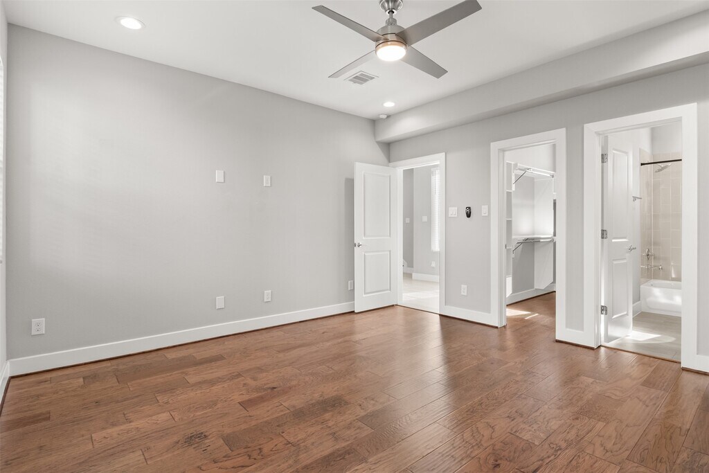 Welcome to Upton Park! Modern living in the heart of EaDo! This contemporary 3-story freestanding home offers 3 bedrooms,3.5 baths,and a 2-car attached garage in a gated community. The first floor includes a secondary bedroom with a private bath and walk-in closet,perfect for guests or a home office. The open-concept second floor features oversized windows with a private balcony for enjoying fresh air and city views. The sleek kitchen boasts stainless steel appliances,quartz countertops,and a spacious island that flows seamlessly into the dining and living areas. Upstairs,the primary suite impresses with a large walk-in closet with built a built in dresser and spa-like bath complete with dual sinks,a soaking tub,and a separate shower. Conveniently located minutes from Downtown Houston,East River,and major freeways. All appliances included—refrigerator,wine fridge,washer,and dryer. Landlord performed multiple upgrades to the home,please see attached feature sheet. MLS# 79422686
