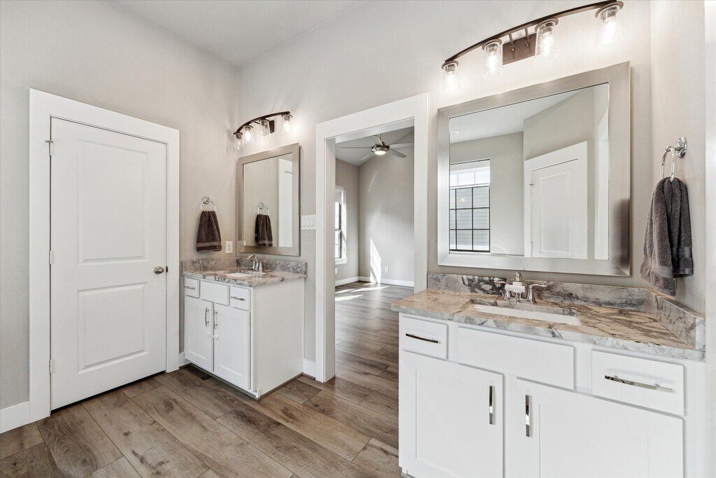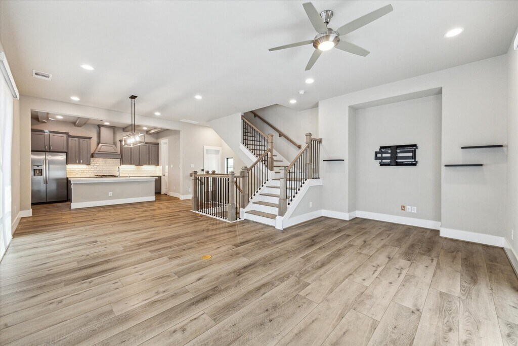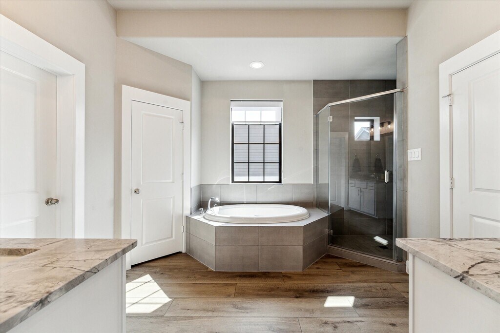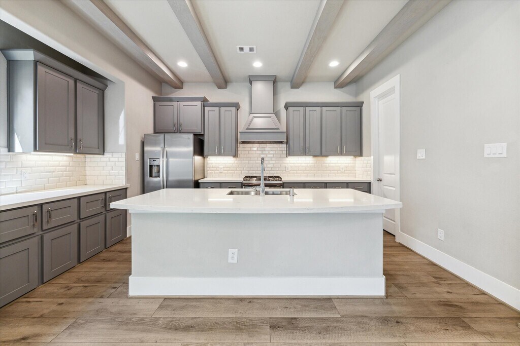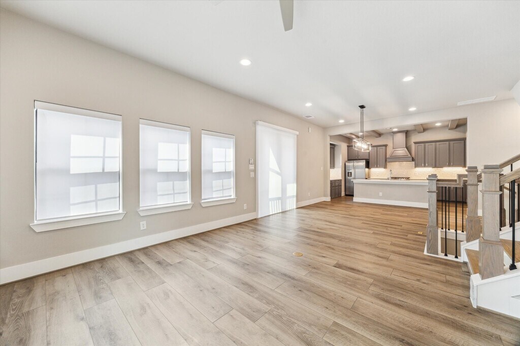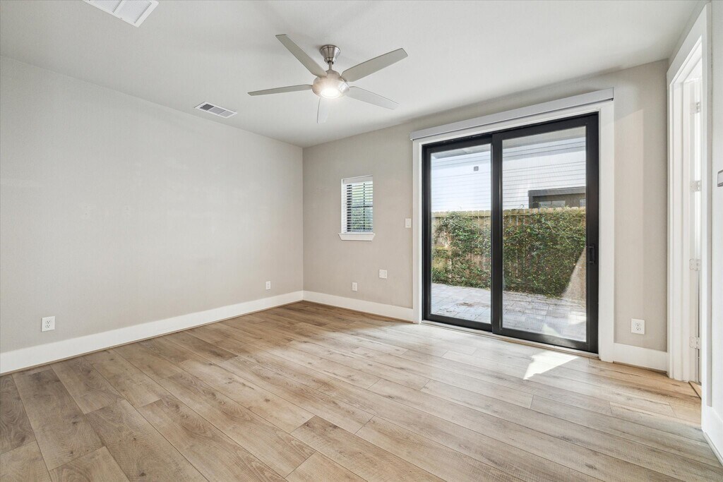 Beautiful 3-bedroom,3.5-bath END UNIT waiting for you! The first floor features a private secondary bedroom with ensuite bath and access through sliding glass doors to a FENCED BACKYARD! The second floor offers an open-concept living,dining,and kitchen area with walkout and Juliet balconies,abundant natural light,and wood floors. The kitchen includes gray Shaker-style cabinetry,quartz countertops,a large island,walk-in pantry,ample counterspace/cabinets. The primary suite impresses with a cathedral ceiling,barn door,dual vanities,and two walk-in closets. A secondary bedroom with ensuite bath is also located on the second floor. Refrigerator,washer,and dryer included! Located in a private enclave of six new homes on a quiet street within walking distance to Crisp,Cedar Creek,Tony’s Mexican,Cavatore,Rainbow Lodge,H-E-B,and more! MLS# 47791463