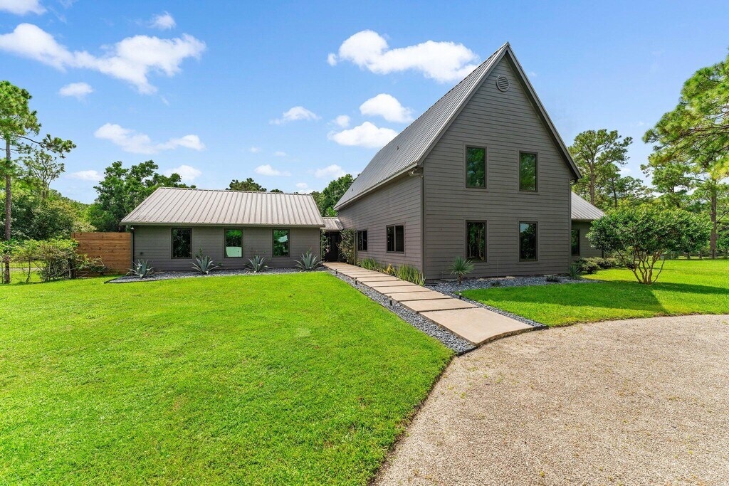 Modern Farmhouse Retreat on 2.5 Acres -- Escape to this stunning 4-bedroom, 3.5-bath modern farmhouse, privately tucked away on 2.5 acres in Jupiter. Fully furnished and thoughtfully appointed, this home is designed for comfort, style, and effortless living--perfect for a seasonal getaway. The interior features a chef's kitchen with premium appliances and a large island, seamlessly connecting to bright living spaces including a family/media room, quiet den, and an impressive 29x29 game room. Upstairs, one bedroom is en suite, while the other two enjoy an exceptionally private Jack-and-Jill layout, with each bedroom having its own water closet and a shared shower/tub. A whole-home reverse osmosis system ensures pristine water throughout. Outdoors, gated access on the east and north sides