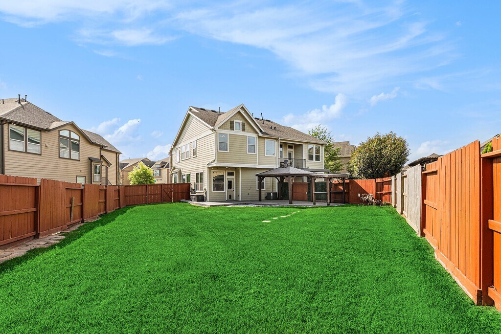 This immaculately maintained townhome sits on an oversized lot. The large backyard features custom stamped concrete,gazebo with a BBQ area,French drain,and smart sprinkler system. Plenty of space for a pool! Gourmet kitchen includes SS appliances,granite countertops,glass backsplash and 42” cabinets. The upgrades don't stop there. Smart WiFi garage door opener,epoxy garage floor and above head metal storage shelves provide ultimate convenience and storage. Upstairs,the primary suite boasts blackout shades,a walk-in closet,ensuite with a shower,garden tub,double sinks,and granite countertops. Two additional bedrooms,a large flex area,full bathroom and a conveniently located laundry room complete the second level. Community perks include resort-style pools,clubhouse,volleyball court,fitness center and dog park. The HOA covers exterior repairs including roof,siding,gutters and front yard maintenance. MLS# 57841057