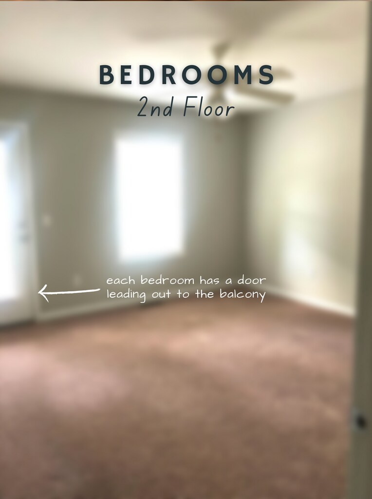 Great location close to campus! This two-story house is very spacious--the living room, dining area, and kitchen are located on the first floor and are very open. There is also a half bath and laundry room on the first floor. Both bedrooms are located on the second floor, each with a private full bath attached and walk-in closet. Washer & dryer are not included, but hookups are available in the laundry room. All electric appliances (no natural gas utility service required). Not furnished. NO ANIMALS