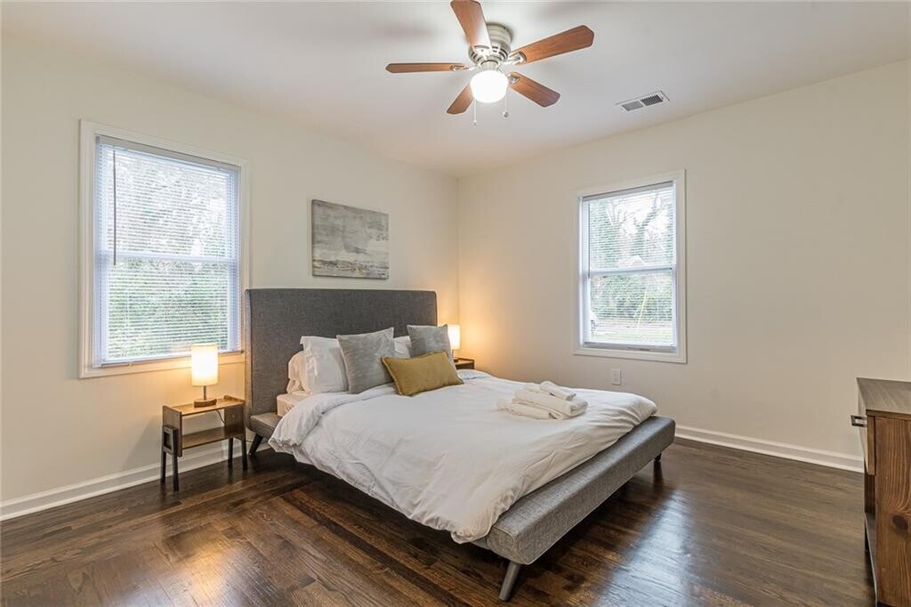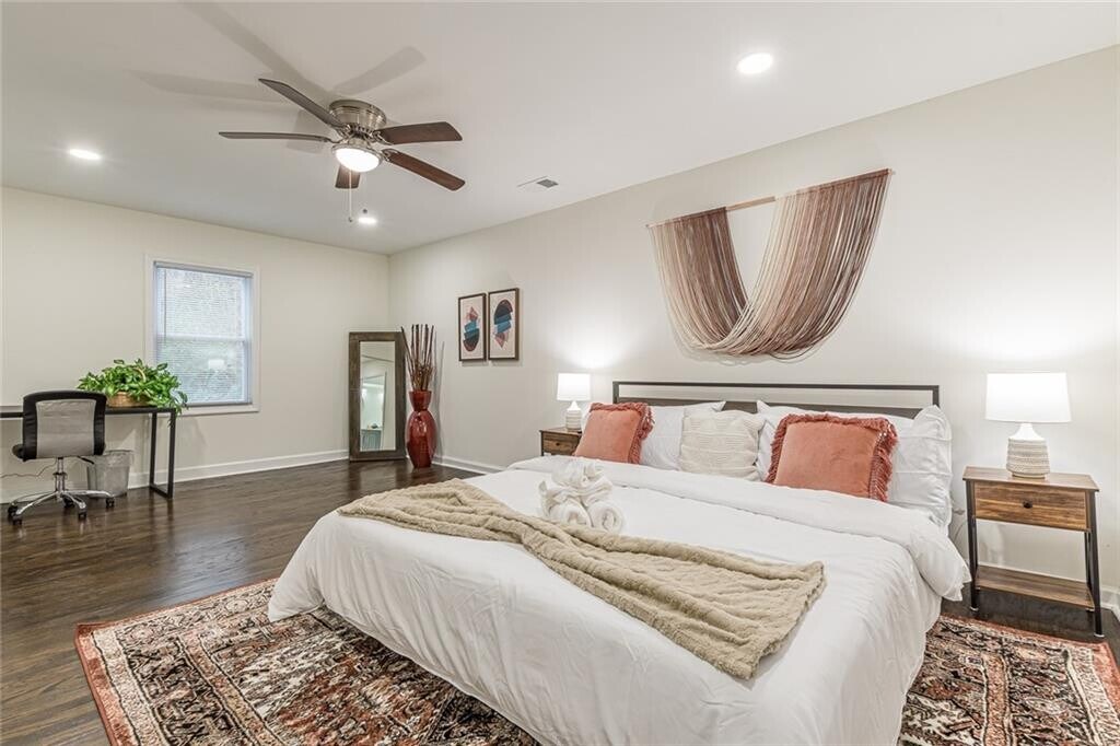 Great place to call home while relocating for work or seeking temporary housing! Modern and fully-furnished 4-bedroom,3-bathroom haven with flexible terms to suit your needs. Strategically located by downtown Atlanta,close to many corporate offices,and 10 mins from the airport. Bonus: HOT TUB in the Master bathroom to unwind after a long day at work! Perfect blend of convenience and tranquility. Easy access to the bustling heart of Atlanta,top notch restaurants and breweries,and a quick commute to major corporate offices. You'll experience the best of both worlds! Property Highlights: - Ample living room - SS appliances and modern chef's kitchen - Four spacious bedrooms,each with its unique charm - Three well-appointed bathrooms for your comfort and privacy - In-unit washer and dryer for your convenience - High-speed Wi-Fi and smart TVs for work and leisure - A private and fenced backyard with chairs and tables for outdoor relaxation - 6 Dedicated parking spots for your convenience Pack your bags,and let us take care of the rest!