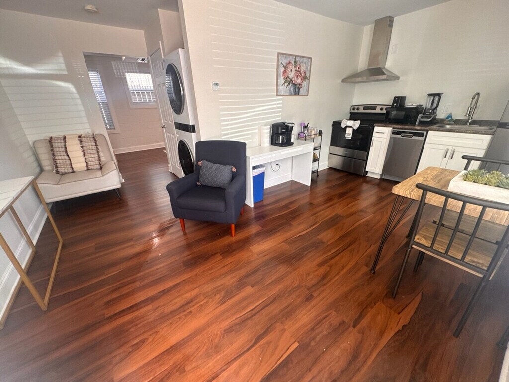 Come stay and unwind at this thoughtfully designed 1-bedroom apartment. The perfect mix of comfort, style, and convenience awaits you, whether you're visiting for a weekend escape or an extended stay. You'll find everything you need to relax and feel at home in this bright, clean, and modern space. The apartment features a super comfy bed and smart TVs, ensuring your entertainment and relaxation needs are met. The well-stocked coffee station with a dual Keurig and drip coffee maker adds a touch of convenience to your mornings. Located just minutes from downtown, local parks, and the best hidden food spots in town, this apartment offers easy access to everything you need. Enjoy a short walk to the great Mountain Goat cafe and explore the vibrant neighborhood. [SI]