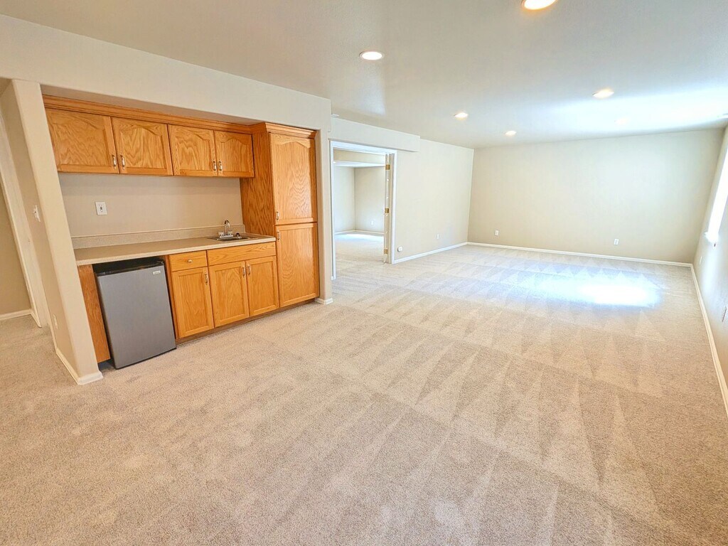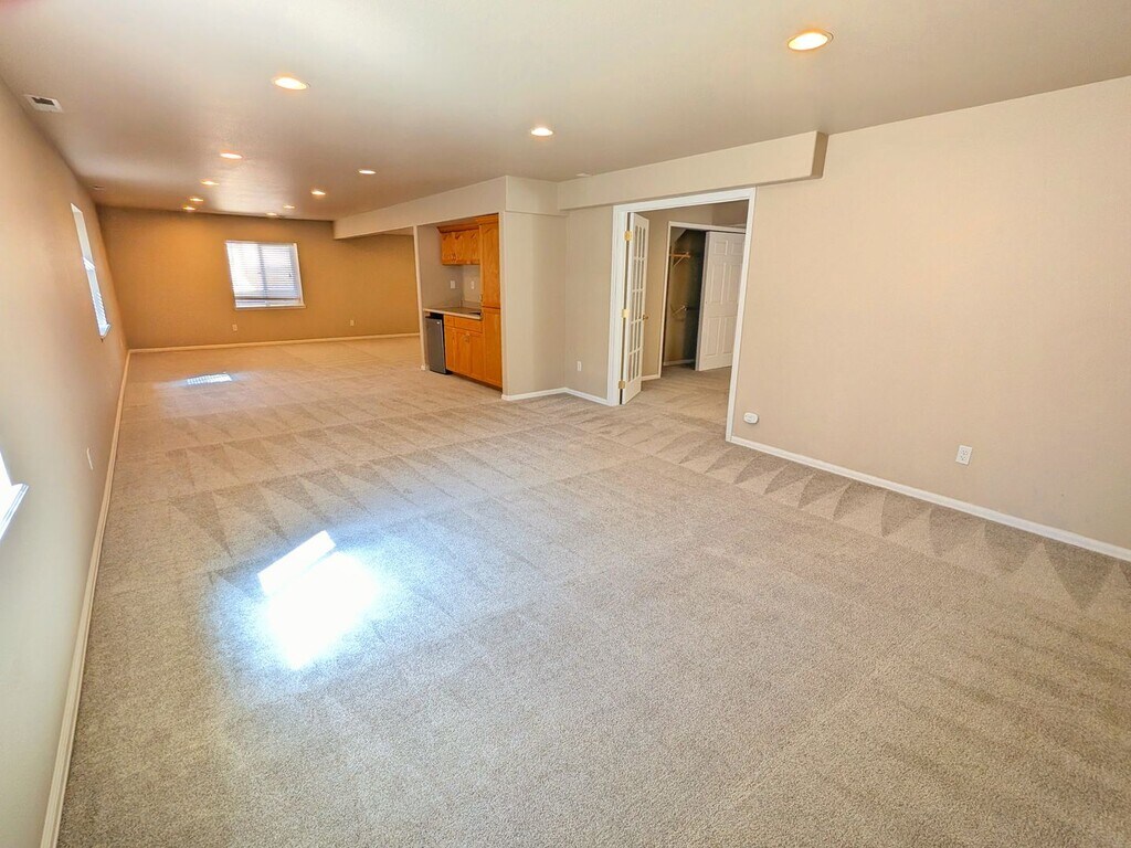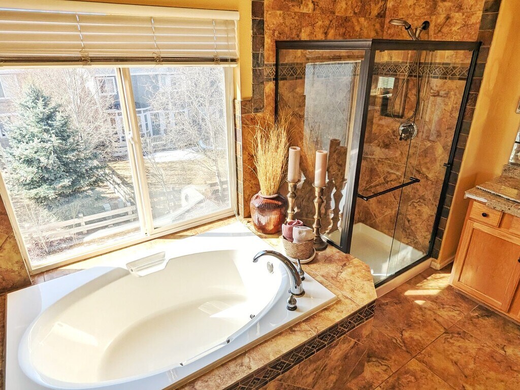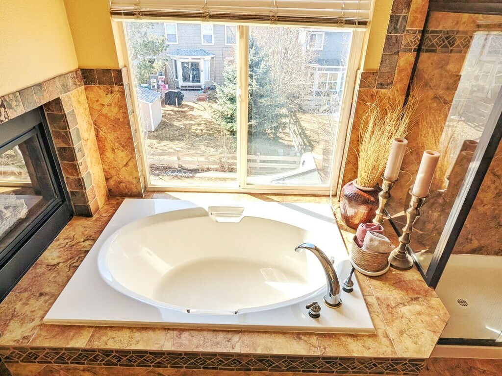 Spacious 5 bedroom/3.5 bath with 3 floors. High vaulted ceilings in living room and fireplace, large kitchen with granite counters and pantry and dining room with large entry room. Hardwood throughout kitchen, living and half bath. Also the 5th bedroom (currently used as an office with window and closet) on main floor. Upstairs is a large master bedroom and bath with two-way fireplace and walk-in closet. 2 other big bedrooms upstairs with nice closet space and a shared jack and jill full bathroom. Bright, open lower level with windows and huge bedroom and 3/4 bath plus bar area. Large rec space and storage area. Great neighborhood and quiet cul-de sac street. Large 3 car garage. New deck off kitchen and patio in flat yard. Pretty views of mountains. Easy access to I25 and all of the new dining and entertainment options around InterQuest and Northgate. A block from Mary Kyer Park and the connecting walking trails, DaVinci school, 1 mile from The Classical Academy schools. Close to USAF base