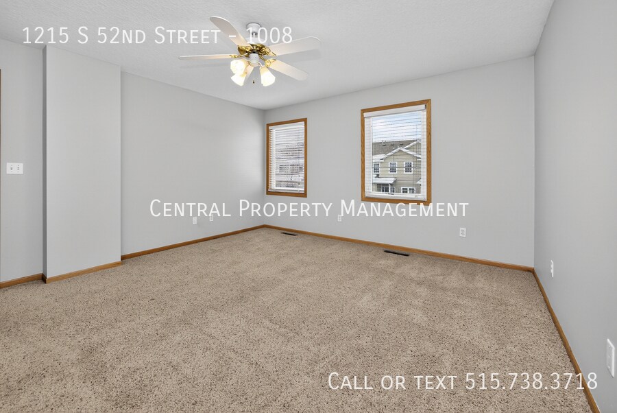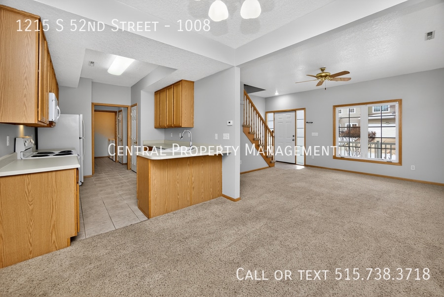 This inviting 2-bedroom townhome in West Des Moines features 2.5 bathrooms and a spacious 2-car attached garage. The main floor offers a comfortable living room with a cozy gas fireplace, seamlessly connected to the dining area and kitchen. A convenient laundry room completes the main level.Upstairs, you'll find two generously sized bedrooms, each with large walk-in closets and their own private connecting bathrooms. The second floor also includes a versatile bonus area--perfect for a play space, home office, or reading nook.