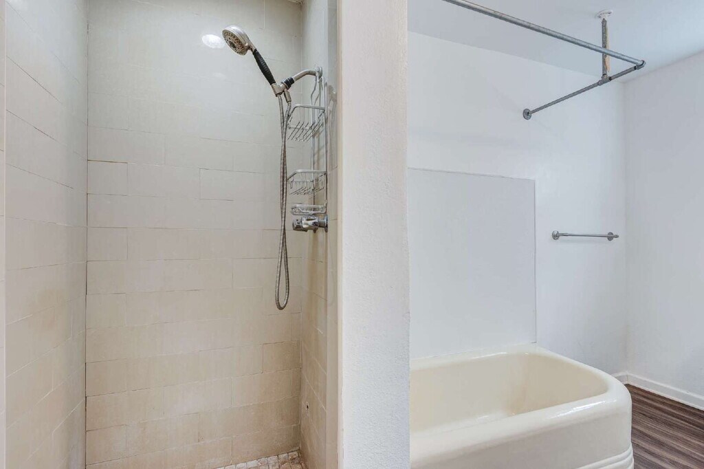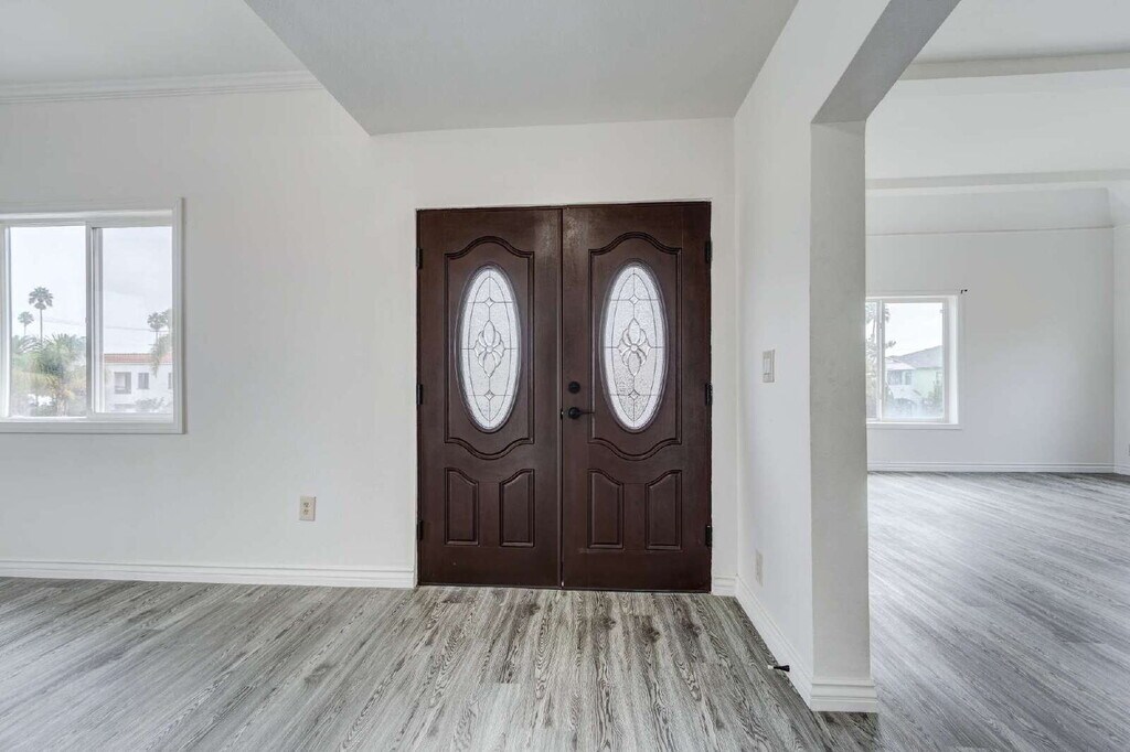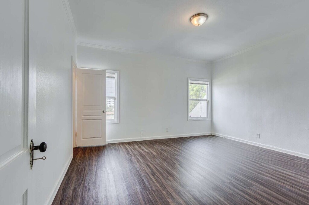 Welcome to 1215 South Longwood Avenue, Los Angeles, a beautifully refreshed upstairs residence in a charming retro-style duplex that perfectly embodies the timeless character and charm of classic Los Angeles living. A welcoming double-door entry with elegant decorative glass panels and sleek modern flooring sets the tone for this beautifully updated home, blending warmth, charm, and contemporary style from the moment you step inside. The large, spacious living room features a cozy fireplace, creating the perfect setting for relaxing evenings or entertaining guests. This spacious two-bedroom, home has been thoughtfully updated while preserving its vintage warmth, featuring gleaming hardwood floors, modern finishes, and a bright, inviting atmosphere throughout. The contemporary kitchen , with ample cabinetry makes cooking and a breeze. Both bedrooms are generously sized, offering excellent closet space and natural light that enhances the home’s airy feel. The updated bathrooms add to the home’s comfort, combining function with a clean, modern look. Convenience continues with in-unit washer and dryer hookups, making laundry days simple and efficient. At the rear of the property, a private one-car garage provides secure parking, while the expansive backyard serves as the perfect outdoor retreat — ideal for BBQs, gatherings, or simply relaxing in the sunshine. Perfectly situated in the heart of Los Angeles, this home offers easy access to the Mid-City, Miracle Mile, and Koreatown neighborhoods, placing you close to local cafés, shops, and major freeways. It’s the perfect blend of classic charm and modern comfort — a place to truly call home.