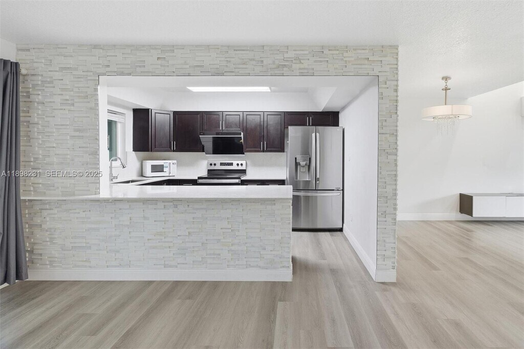 No HOA approval required! Spacious and freshly renovated townhome in Flamingo Gardens Phase V offers 3 bedrooms 2 baths upstairs, and ONE PRIVATE EN SUITE BEDROOM DOWNSTAIRS. The living room features soaring ceilings and a sleek, modern stainless steel staircase. Waterproof LVP flooring throughout the interior. Bright wide quartz countertop pairs seamlessly with the powerful Fotile range hood in the updated kitchen. Newly-built patio room offers a fresh, modern space for relaxation and entertainment. ChargePoint Level 2 EV charger in the car garage. Impact-resistant windows and accordion hurricane shutters offer significant protection. Two parking right in front. Close to shopping plazas, restaurants, and outdoor sports facilities. Easy access to highways, and zoned for top-rated schools. MLS # A11898231