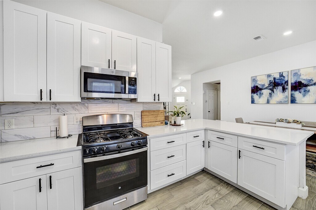 Welcome to this beautifully updated one story home featuring a bright,open-concept layout. The stylish kitchen offers abundant shaker-style cabinetry,sleek countertops,stainless steel appliances,a walk-in pantry,and convenient breakfast bar seating that is perfect for everyday living & entertaining. The spacious living area showcases a cozy gas fireplace,high ceilings,and durable wood-look tile flooring that extends through the common areas. Retreat to the private primary suite that has a dual-sink vanity and an oversized deluxe walk-in shower w/a frameless glass enclosure. Additional upgrades include updated shaker-style cabinetry in both bathrooms,updated fixtures,cabinet hardware throughout,added attic insulation,landscaping,and a freshly painted exterior for impressive curb appeal. Ideally located just minutes from Hwy 249 and the Grand Parkway (99) for easy commuting and access to shopping,dining,and entertainment. Don't miss this one! MLS# 10825849