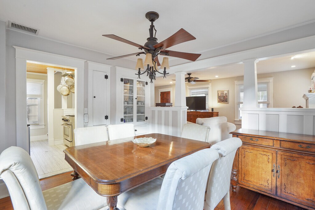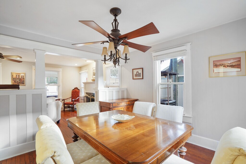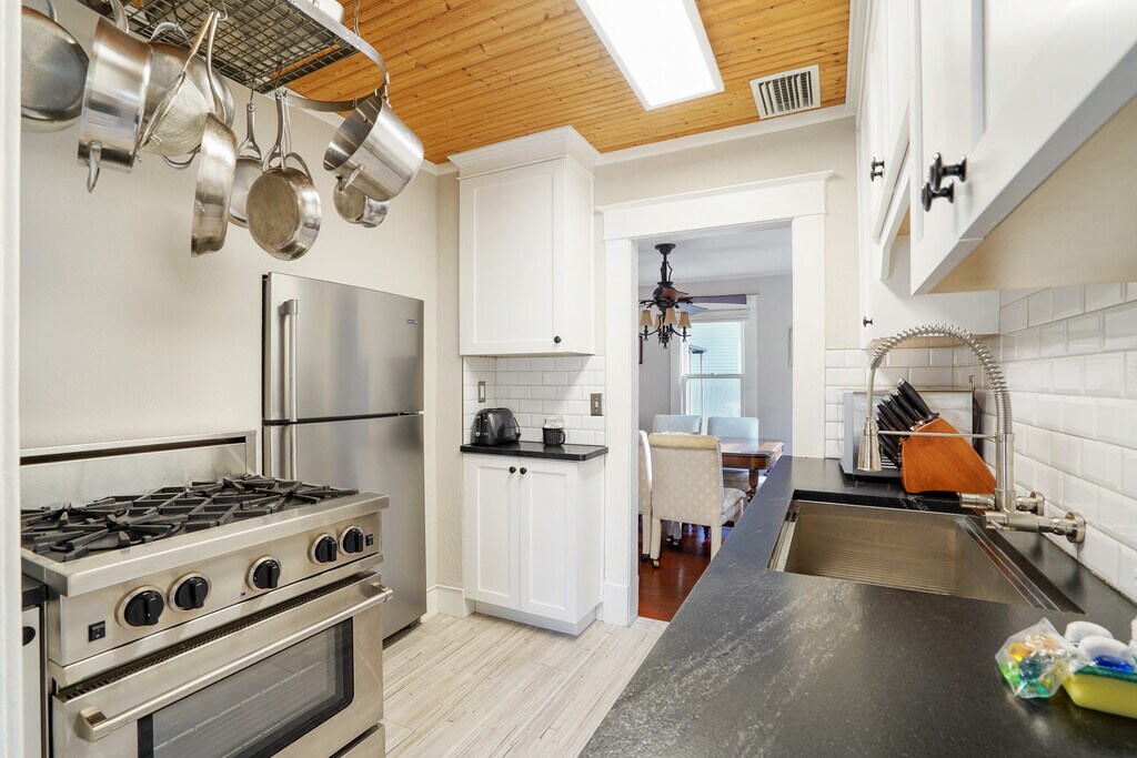 Quintessential Old Northeast charm, walkable lifestyle, and timeless character! This is exactly what you hope to find in a rental home. Located less than one block off 4th Street North, you’ll be able to stroll or bike to your favorite coffee shops, restaurants, bars, and boutique shopping with ease. This 3 bedroom, 2 bathroom, two-story home features a bright and beautifully updated stainless steel kitchen perfect for the home cook. The living room is open and inviting and flows seamlessly into the dining room for effortless hosting. A full bathroom is located downstairs and opens onto the backyard, where you’ll find a private retreat complete with wood plank decking and plenty of room to lounge and unwind. Upstairs you’ll find a large full bathroom and three bedrooms. One bedroom is currently arranged as a professional office but can be converted back into a bedroom if preferred. The southeast bedroom offers private balcony access, and the front porch & upper balcony both provide the perfect place to relax outdoors, sip your morning coffee, or read in the afternoon shade. The kitchen is fully stocked with all standard appliances, cookware, and dishware. Linens and towels are provided for an easy move-in. Smart TVs are already in place, just connect your preferred streaming services. Washer & dryer are included, along with garage parking, which is a rare luxury in this neighborhood. Important Note: This listing is for the main house only. The back rental unit is not included and is not available as part of this lease. We are showing 7 days a week so please call, text, or email to see this timeless home. We require first, last, security, background/credit check, and move out cleaning fee upon lease signing. Owner pays for gas, water, sewer, and trash. Tenant is responsible for Duke Energy, cable, and WiFi. No smoking.