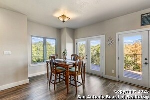 Tucked away in Canyon Lake, 1216 Canyon Lake Dr backs to a spring fed pond on a private park shared by only a few homes which offers you backyard access to Canyon Lake. The home features 3 bedrooms, 2.5 baths, an open kitchen and living area, with a flex or office space on the second floor, and all bedrooms located on the third level. Enjoy lake and Hill Country views from the second story balcony, plus a Juliet balcony off the primary suite. Interior highlights include granite countertops, soft close cabinets and drawers, casement windows, vinyl flooring, and an electric fireplace in the main living area. The oversized two car garage offers a large storage closet and direct access to the back patio. Less than one mile from Boat Ramp 6, One of Canyon Lakes primary public boat ramps. Conveniently located near local restaurants, tubing, and live music at Whitewater Amphitheater. Neighborhood amenities include a community pool, playground, pavilion, tennis, basketball, and pickleball courts! Quiet setting, functional layout, and easy access to the lake and Hill Country.