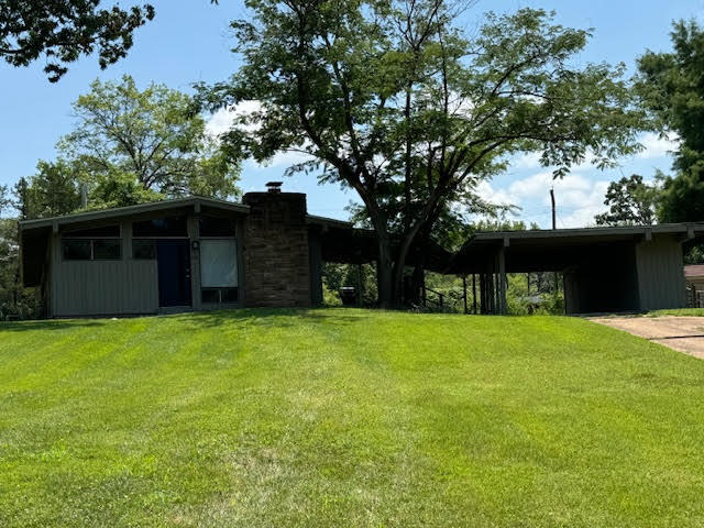 Charming 3 bedroom, 2 bath mid-century modern house in the heart of Craig Woods, Kirkwood's most unique historic district. Situated on a 0.4 acre lot on a cul-de-sac, this home boasts a contemporary design that seamlessly blends modern elegance with timeless charm. Stainless steel appliances, gas stove, and granite countertops. Side patio, perfect for hosting summer BBQs and gatherings with friends and family. Additional highlights of this home include a carport, laundry room, and a large yard. Located within the Kirkwood school district and just moments away from multiple parks, schools, and convenient access to highway 270 and 44. Rent: $2000/month Deposit: $4000