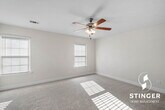 Welcome to this ready-to-move-in home located in the desirable Hearthstone Lakes community! Interior Features: - Downstairs office space with French doors - Stainless steel appliances - Kitchen pantry - Ample storage space throughout the home - Master bathroom with both walk-in shower & large tub - Master bedroom with large walk-in closet Exterior Features: - Covered front porch with ceiling fan - Fenced-in backyard with pond view - Patio off the living room & kitchen, perfect for entertaining - Community amenities: playground, pool, and gymCommunity Playground Luxury Vinyl Planking Pond View