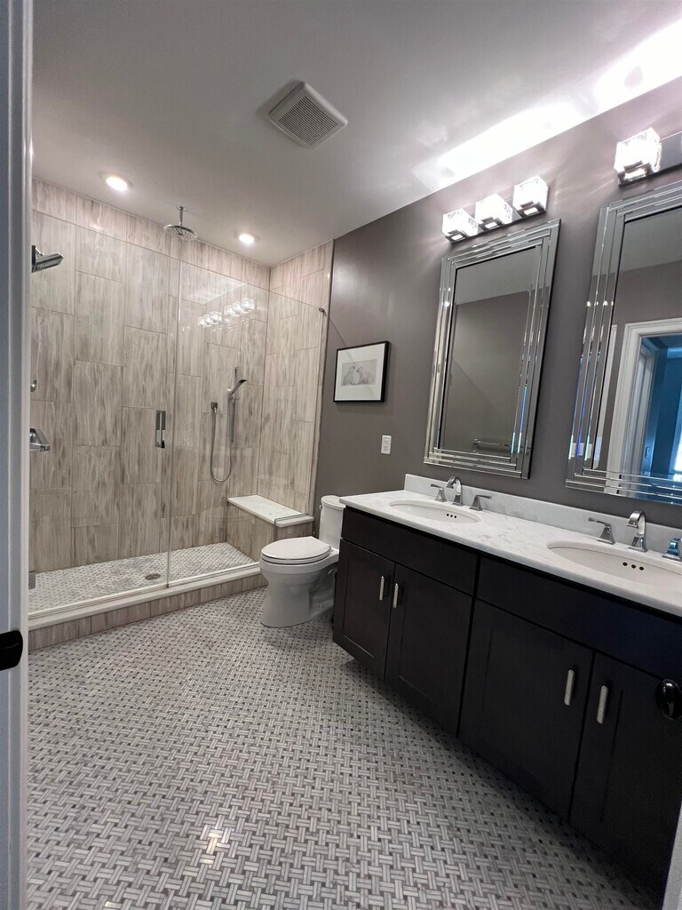 Welcome to this stunning 3 bedroom 2 bath duplex flooded with light and located on a prime tree-lined uptown block in the heart of Hoboken. With 1800 square feet of living space, this home feels spacious and boasts features that include oak floors, 10-foot ceilings and high-end appliances throughout. The exquisite chef’s kitchen is delineated by a large island with a wine refrigerator and features top-shelf appliances including a Sub-Zero built-in 36 refrigerator, a Wolf range, a dishwasher, and quartz countertops. The two additional bedrooms are also located on this floor. On the first level, the expansive master suite offers two large closets (one is a walk-in) and a modern bathroom with imported porcelain tile and a double vanity. The staircase off the main living area leads to the private rooftop oasis where you can enjoy summer evenings with expansive unobstructed Manhattan views. The fully furnished rooftop features a built-in gas BBQ, refrigerator. and even a putting green for golf enthusiasts There is an additional storage on the lowest level of the home perfect for keeping bulky items such as bikes and luggage. There is a 1 month security deposit."