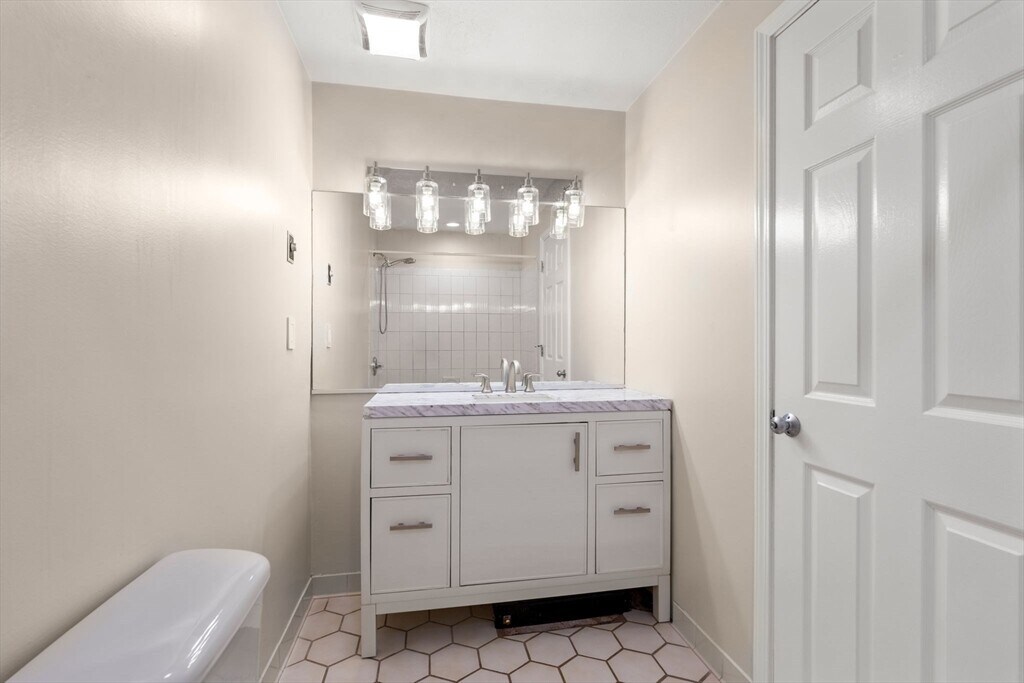 NEW RENTAL ! Welcome home to this bright,spacious first floor condo offering an open floor plan with two generous bedrooms & two full baths. The inviting sunken living room features a wood-burning fireplace & a sliding door leading to your own private,covered deck—perfect for relaxing or entertaining. The oversized primary suite boasts an attached full bath & two large closets. The guest bedroom also offers ample storage with double closets,plus easy access to the second full bath & convenient in-unit laundry. Recent updates include new stainless steel appliances,updated bathroom vanities,modern lighting,& fresh paint throughout. Covered private deck with storage. Additional features include hardwood floors,central heating & air conditioning,& an oversized (5’x9’) private storage unit in the basement. This property is ideally located approximately 1/2 mi from the commuter rail,providing quick access to downtown Boston. GOOD CREDIT A MUST! BACKGROUND CHECK REQUIRED! MLS# 73458002