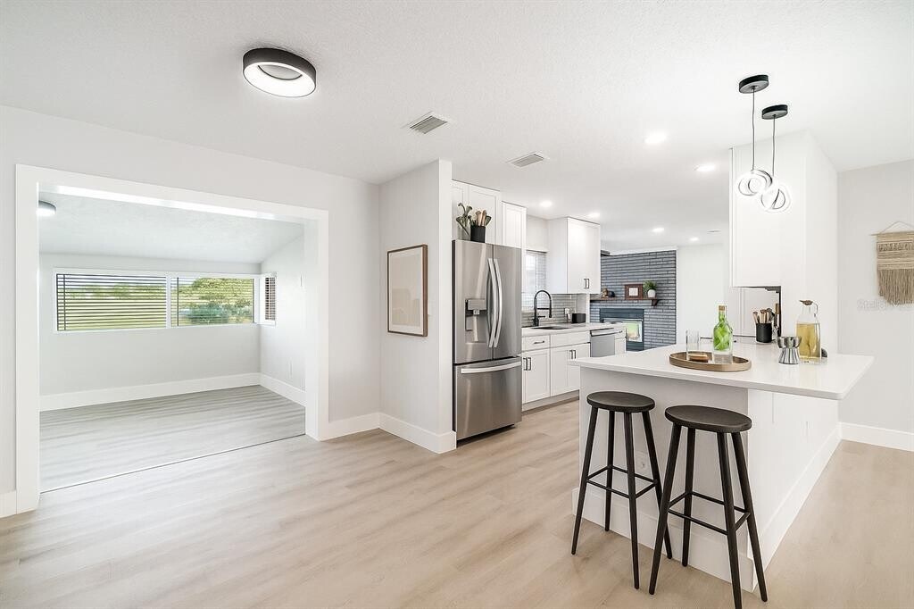 One or more photo(s) has been virtually staged. Stunning,Recently Renovated 3BR/2BA Lakefront Home on Lake Gleason! Offering 1,800 sq ft of modern living and stunning sunset views! The entire property has been professionally upgraded,featuring a brand-new gourmet kitchen complete with sleek quartz countertops,chic shaker cabinets,and a suite of new stainless steel LG appliances. Enjoy the modern,open floor plan with new luxury vinyl plank flooring and fresh paint throughout. Step out onto your private patio to enjoy panoramic water views and stunning western sunsets,all with no HOA restrictions allowing you to bring your boat,jet skis,and fully embrace waterfront living. MLS# O6353190
