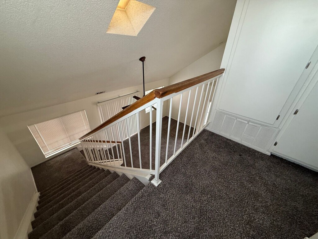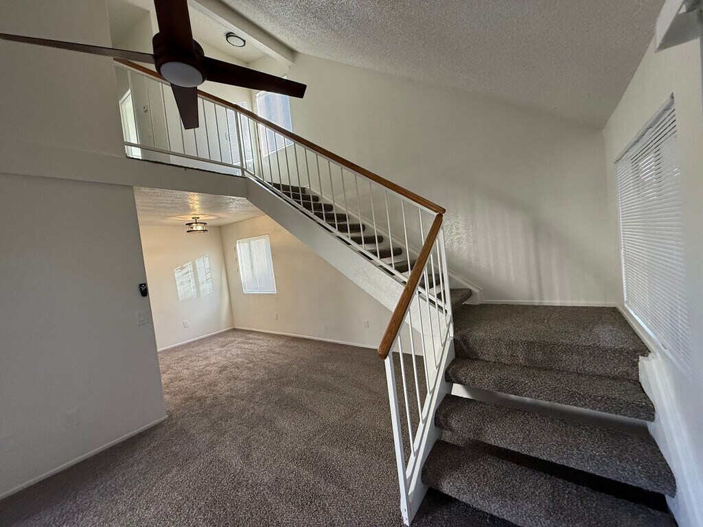 New Laminate Floors, New Appliances, New Blinds, New Upgraded Light Fixtures, New Bathroom Countertops and Sinks, One Bedroom Down Stairs, High Ceilings, Open Riser Staircase gives the home an open and elegant touch. Main bedroom is spacious with high vaulted ceilings. Main Bedroom has a large spacious closet and connecting to the hall bathroom. Upstairs loft has a large linen closet from top to bottom. Fenced yards. Close to shopping, schools, restaurants, transportation and freeway. For more information or to schedule a viewing please contact Maria De La Torre at Qualifying Criteria: Every one over 18 must apply Credit check fee is $45 per applicant Income must be verifiable Income must be 3x's the amount of the rent Credit score must be 650 or better No open bankruptcies No Evictions
