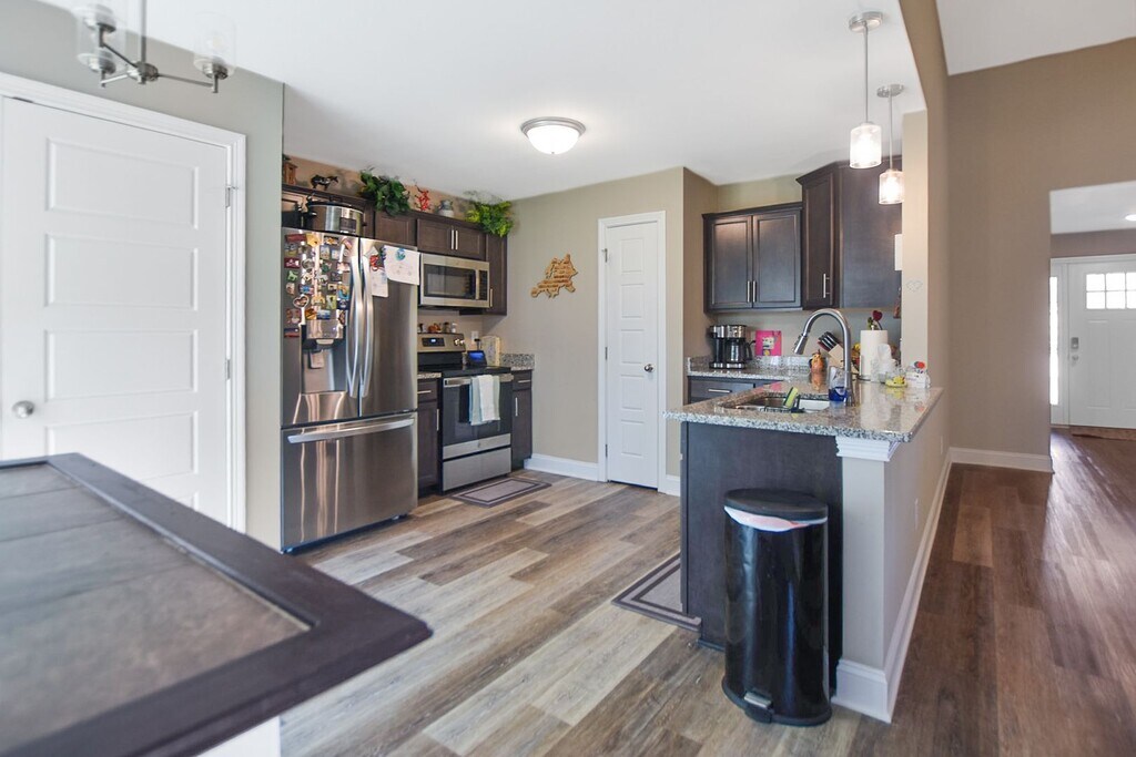 This like new three bedroom, two bath ranch home offers a fantastic open floor plan and modern finishes throughout! The spacious living room flows seamlessly into the eat in kitchen, which features granite countertops, stainless steel appliances, and a convenient pantry! The primary suite includes a full bath with double vanity and shower, while both guest rooms are generously sized! Enjoy the great outdoor space with a covered deck and a fully fenced yard, perfect for relaxing or entertaining! Pet Rent Scale - Dogs: $30.00 per month - Cats: $35.00 per month - Restricted Breeds: $50.00 per month