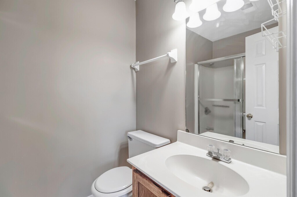 Spacious two story, 3 bedroom, 2.5 bath condo just minutes to historic downtown Franklin retail and restaurants! Lots of green space and privacy in the back yard, backing up close to Carnton. Enjoy a fresh cup of morning coffee on your choice of two decks. And if you prefer the primary bedroom with ensuite on the main level and two bedrooms upstairs, this condo is for you! Unit is approx. 1,564 sf on the right side of the duplex with entrance on the right side. Features also include: granite kitchen counters, stainless and black appliances, hardwood like floors downstairs, ceiling fans, walk in primary closet, washer/dryer hook ups, extra outside storage closet, and more! Two parking spaces. Owner pays HOA, with lawncare. Community pool. Williamson County schools.