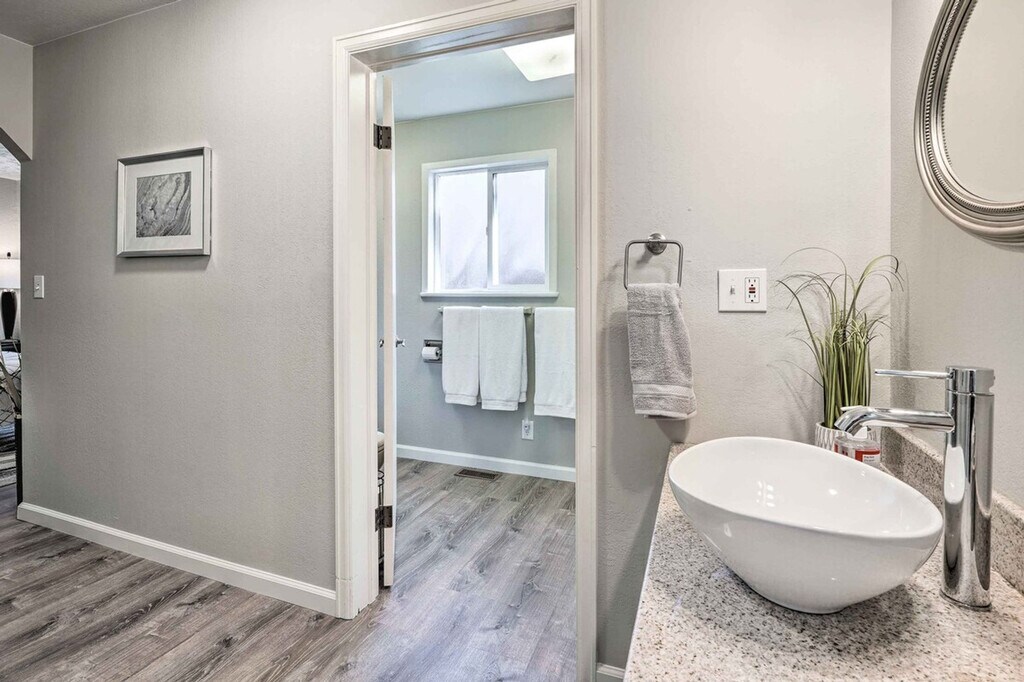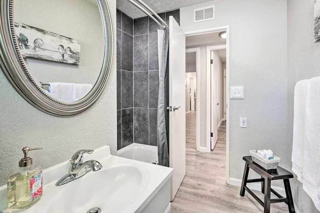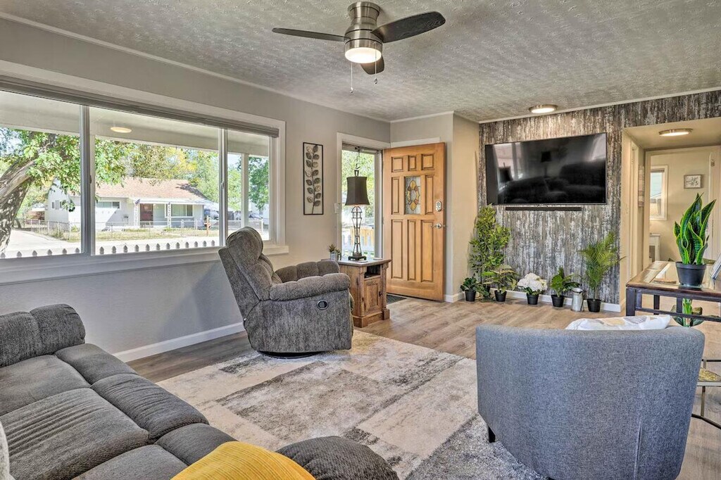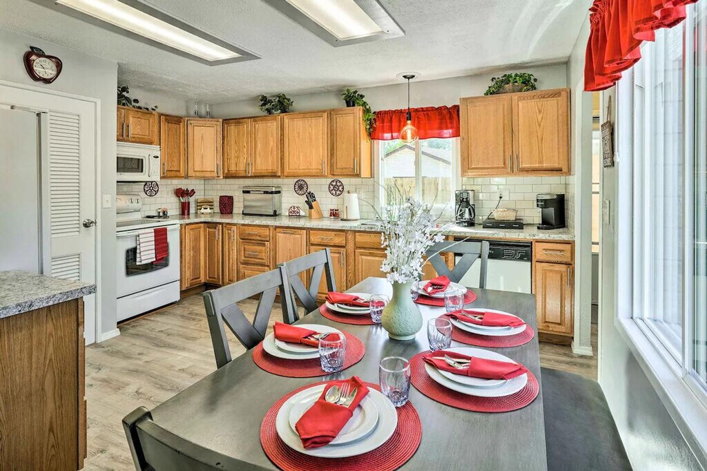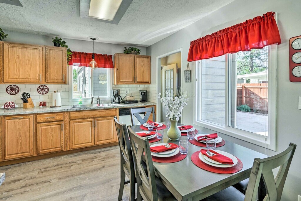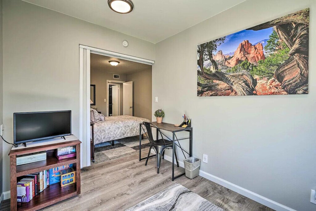 Feel at home in this 3-bedroom, 2-bathroom vacation rental home in Colorado Springs. With 2 steps required to access this location, this home is ideally located with quick access to local and mountain fun. This home features a smart TV, high chair, gas grill, books, board games, and is laptop friendly. The kitchen is equipped with a fridge, stove/oven, Ninja air fryer, dishwasher, microwave, cooking basics, coffee maker, dishware/flatware, and paper towels/trash bags. Other amenities include linens/towels, central air conditioning, central heating, a ceiling fan, complimentary toiletries, a hair dryer, an iron/board, keyless entry, in-unit laundry, and free Wi-Fi. Pets are welcome with a $100 fee per stay (dogs only, 2 pets max). This home will keep your entire family entertained while you relax on one of the furnished patios. After exploring all the Centennial State has to offer, retire early to enjoy a home-cooked meal in the outdoor dining area. Your safety matters. This property features 2 exterior security cameras: 1 camera is located on the front porch facing the entrance, and 1 camera is on the back patio facing the gate entrance. The cameras are outward facing and do not look into interior spaces. The cameras actively record video when motion is detected by the device (including devices linked to the camera such as the alarm system’s motion detector) or when the video doorbell button is pressed. [SI]