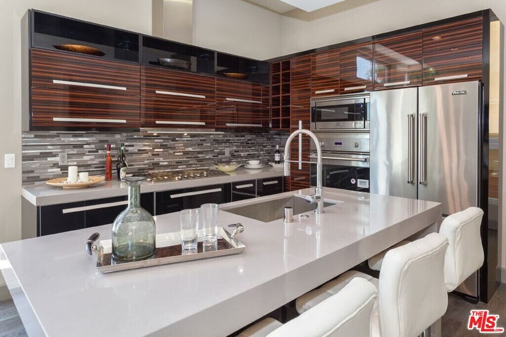 Welcome to your dream home. This new construction contemporary designed smart townhome has been custom designed with the modern resident in mind. This pinnacle of vertical living offers exclusivity and privacy while the prestigious North of Sunset location is only steps away from the best dining, shopping, and entertainment venues in the City! Four stories and serviced by a private in-suite elevator, this one of a kind unit offers supreme privacy and unobstructed 270-degree views of Downtown to Santa Monica. Living and dining room are located on a separate level which features 12ft ceilings, private balcony, floor to ceiling glass walls and windows, open contemporary European designed kitchen with custom edge Quartz Stone countertops, center island, built-in professional series stainless steel Viking Appliances. Spacious master bedroom, huge custom designed master closet with organizers. *Photos of model staged unit, listed unit has varying finishes and layout. MLS# 25608477
