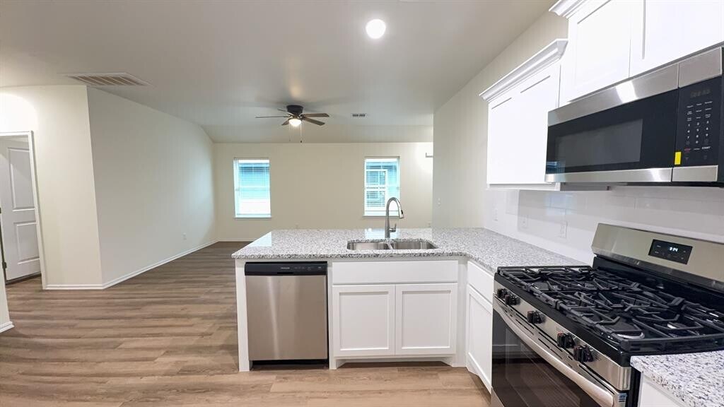 Welcome to Brand New Masonwood featuring this 3 Bedroom 2 Bath 2 Car Garage Duplex in a Great location close to the Broadway Extension and only 8 minutes from downtown OKC. Nice features such as granite counter tops,tile backslash,and large island that can double as a breakfast bar. All appliances included with 5 Burner Gas Range. Laundry room is equipped with both gas and electric connections. No carpet,vinyl wood look flooring throughout. Ceiling fans are included in both the living room and primary bedroom suite. Fenced backyard. Lawn care is provided with in-ground irrigation systems. Pets are considered case by case. Refrigerator,range,dishwasher,microwave,washer and dryer are included. All residents are enrolled in the Resident Benefits Package (RBP) for $45.00/month which includes renters' insurance,credit building to help boost your credit score with timely rent payments,$1M Identity Protection,HVAC air filter delivery (for applicable properties),our best-in-class resident rewards program,and much more! More details upon application.