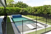 Stunning Modern Pool Home with Spa - Your Private Oasis Awaits!Step into this beautifully updated 3-bedroom, 2-bath, 2-car garage home featuring a resort-style pool and spa, perfect for relaxing or entertaining. The expansive covered back porch and fully fenced yard are surrounded by lush, tropical landscaping--creating your own serene retreat. Inside, you'll love the open-concept layout with plank tile flooring throughout, granite countertops, complete with stainless steel appliances and a large island. The primary suite boasts a designer walk-in closet, offering both style and functionality. Also include, blinds in living and bedroom areas. Wide driveway with space for a boat or RV. Include pool service, lawn maintenance. This home truly has it all ** MUST SEE**